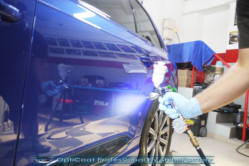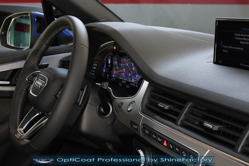 Witamy. Dziś chcemy pokazać Państwu pełną relację z prac nad Audi Q7 w wyjątkowym lakierze. Właścicielowi zależało na jak najmocniejszym zabezpieczeniu auta naszymi topowymi powłokami ceramicznymi. Autem zajęliśmy się maksymalnie kompleksowo, rozpoczęliśmy od zajęcia się nadkolami oraz wnętrzem kół. Następnie całe nadwozie zostało bardzo dokładnie i dogłębnie oczyszczone. Lakier, przez klika dni poddawany był korekcie czyli usunięciu wszelkich niedoskonałości aby uzyskać maksymalnie dobry końcowy efekt wizualny. W między czasie kilkudniowych prac z lakierem zajmowaliśmy się także dokładnie wnętrzem, gdzie oczyściliśmy i zabezpieczyliśmy skóry i wszelkie inne elementy wnętrza. Nie zapomnieliśmy, także zająć się komorą silnika. Po długiej korekcie lakieru, zajęciu się wszystkimi detalami na zewnątrz jak skorygowanie kloszy lamp, elementów dekoracyjnych, chromowanych itp całe auto zostało zabezpieczone pakietem powłok ceramicznych, głównie warstwą natryskową powłoki 9H+ OptiCoat Professional z dodatkową warstwą GlossCoat, co zapewniło maksymalną możliwą ochronę oraz perfekcyjny wygląd i połysk. Teraz utrzymanie auta w idealnej prezentacji będzie banalnie łatwe. Zapraszamy do bardzo szerokiej fotorelacji.