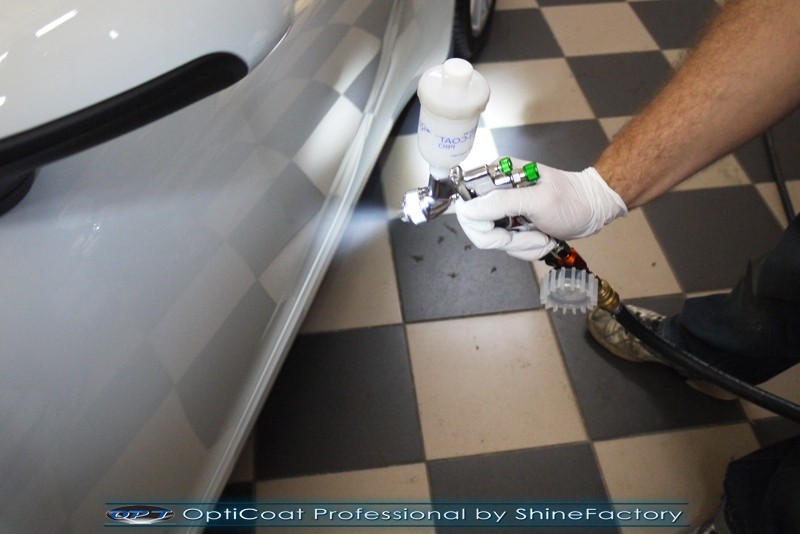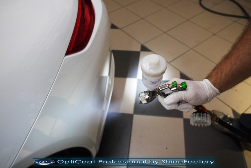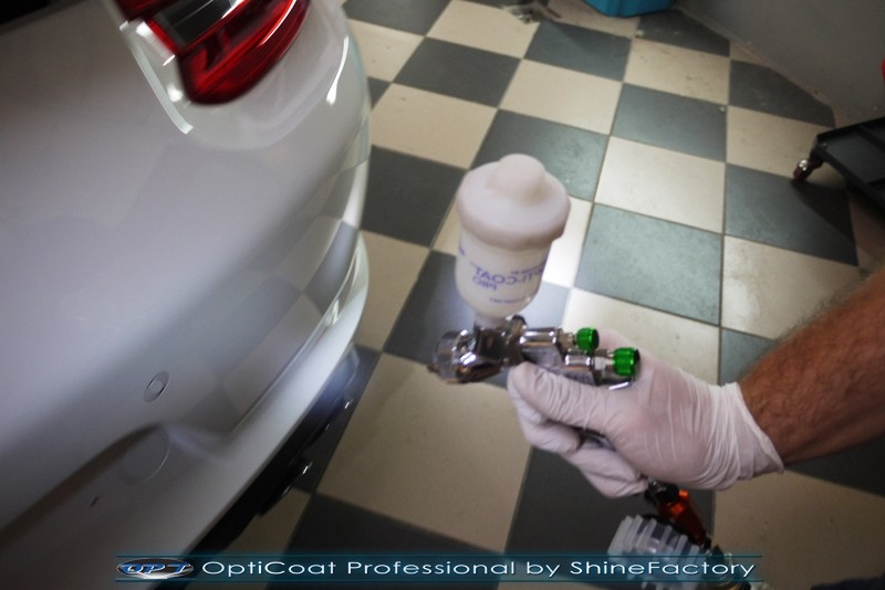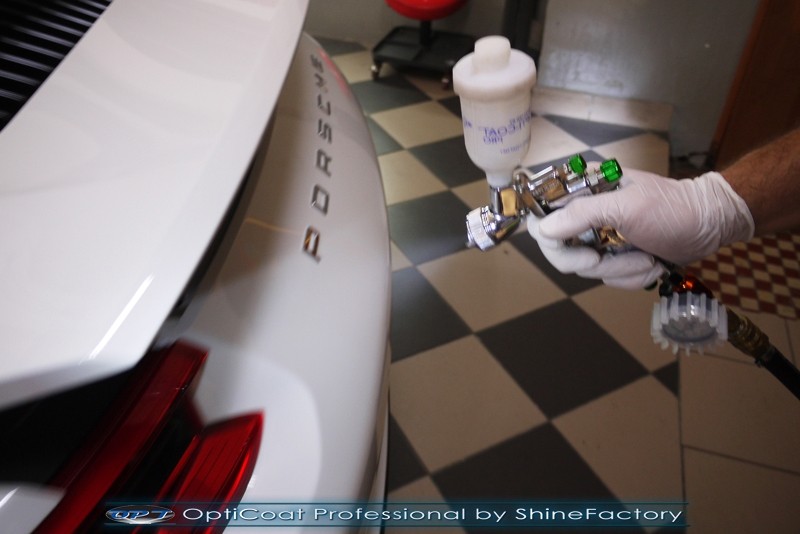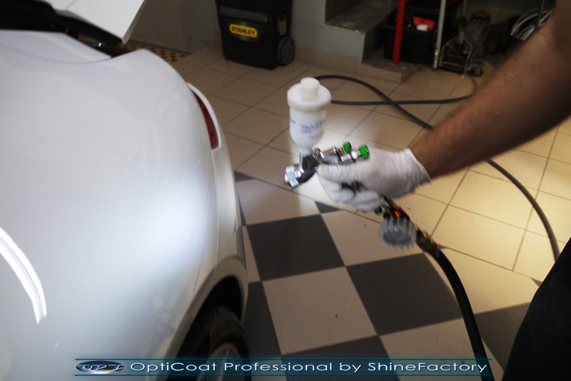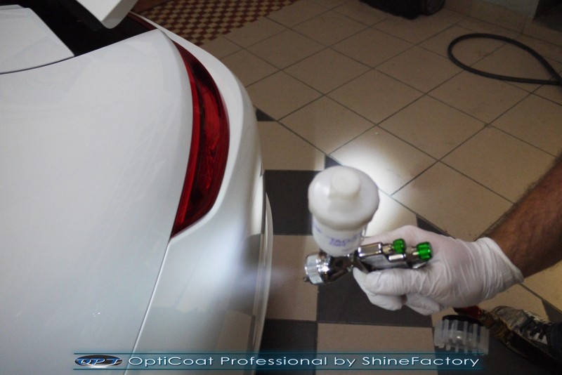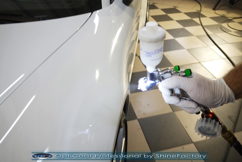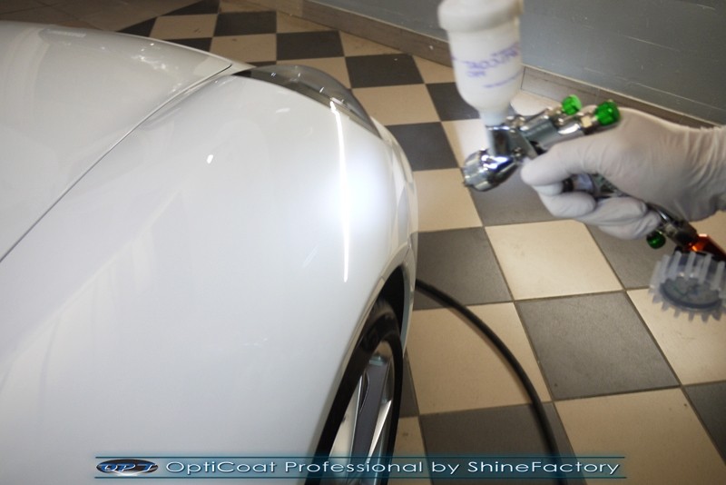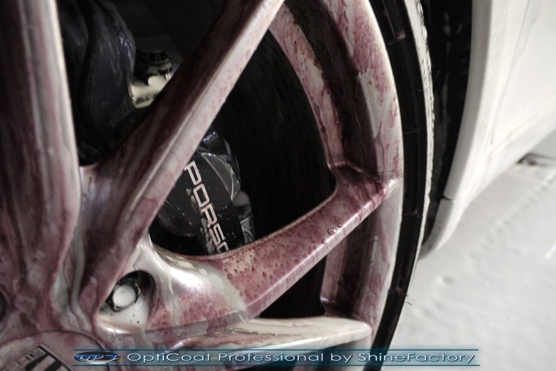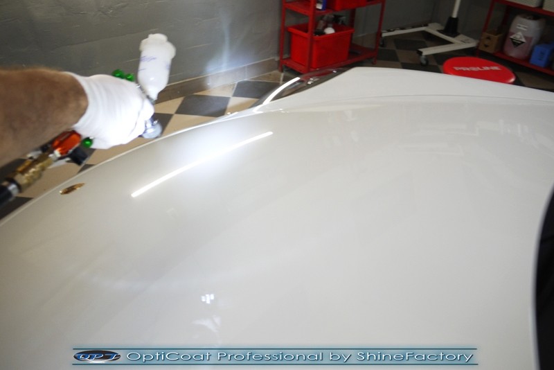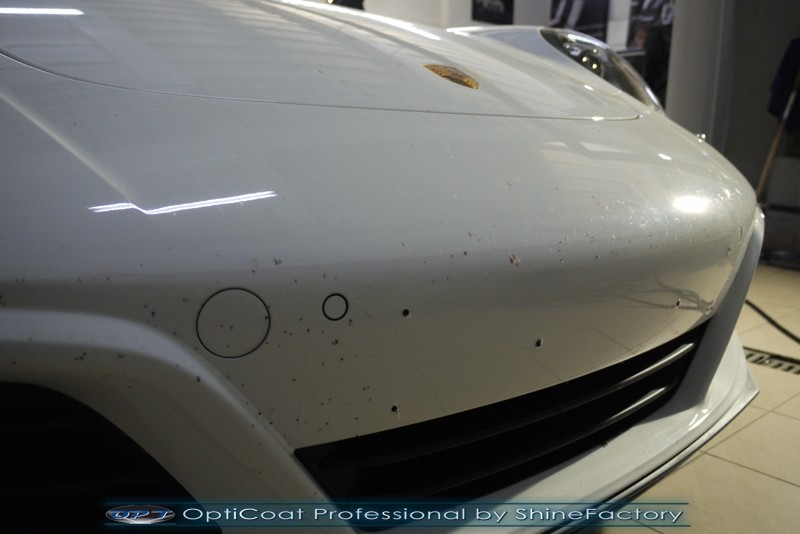 Witamy! Tym razem mieliśmy przyjemność zająć się najnowszym modelem Porsche 911 w białym niemetalicznym lakierze, które właściciel powierzył nam w celu wzmocnienia delikatnego lakieru w szczególności zabezpieczenia na powoli zbliżający się ciężki zimowy okres. Głównym zadaniem było zabezpieczenie całego nadwozia pakietem najlepszych powłok ceramicznych świata, dlatego prace rozpoczęliśmy od specjalistycznego dogłębnego oczyszczenia z zabrudzeń oraz fabrycznych zabezpieczeń. Lakier przed aplikacją zaawansowanego zabezpieczania został doprowadzony do ideału oraz dokładnie odtłuszczony. Następnie przeszliśmy do aplikacji powłok na każdy element auta jak lakier, szyby, plastiki, felgi itp itd. Na całe auto zaaplikowaliśmy poprzez metodę natryskową 100% kompozytu ceramicznego 9H+ opartego na SiC Optimum OptiCoat Professional połączoną z powłoką GlossCoat, która zapewniła maksymalny połysk i ochronę na bardzo długi czas. Po aplikacji, całe auto zostało wygrzane lampami IR w odpowiedniej temperaturze w celu utwardzenia powłok. Zapraszamy do fotorelacji z prac.