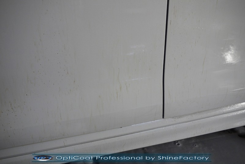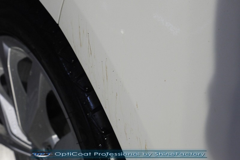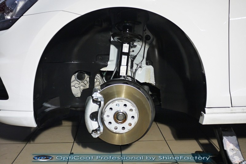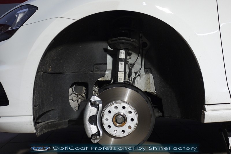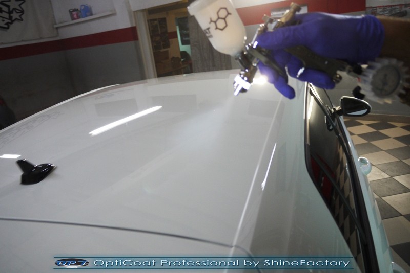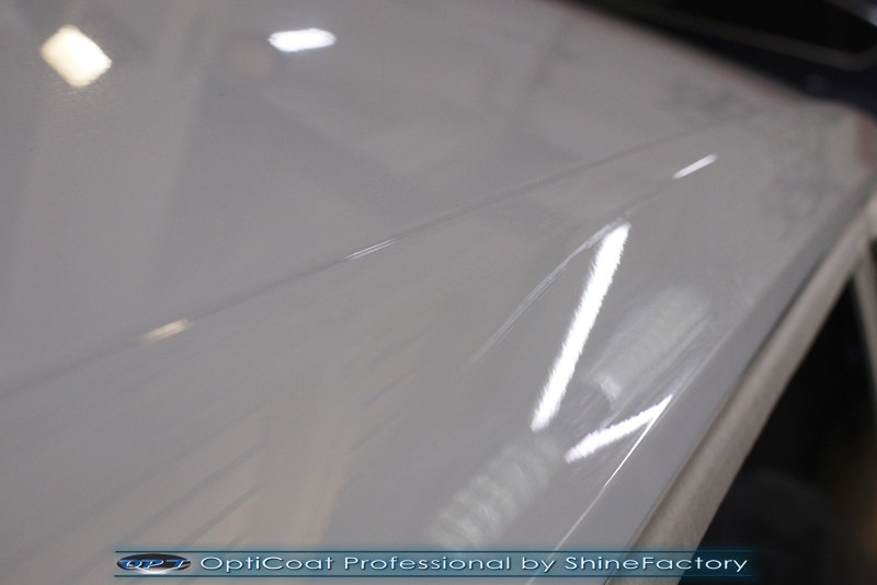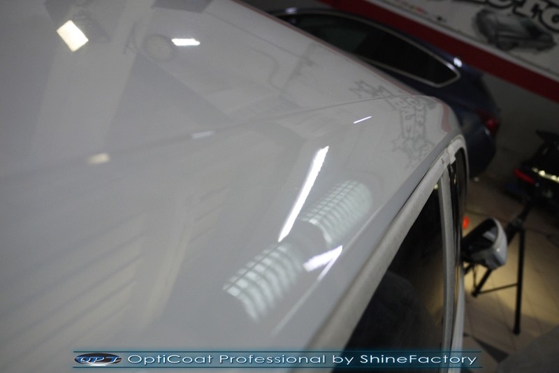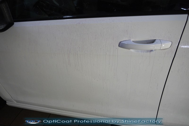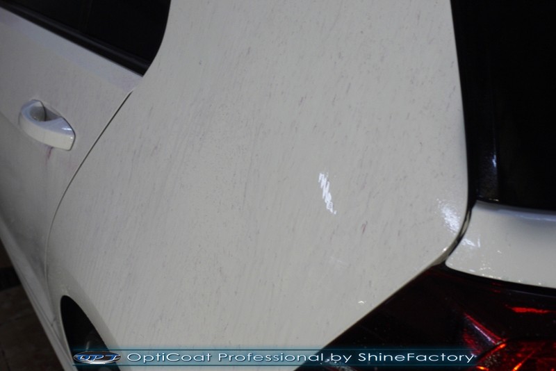 Nowy Volkswagen Golf w niemetalicznym białym lakierze został nam powierzony zaraz po wyjeździe z salonu w celu jak najmocniejszego zabezpieczenia każdego elementu auta na nadchodzące trudne warunki. Prace zaczęliśmy od detailingu nadkoli oraz wnętrza felg, zabezpieczyliśmy powłokami zaciski hamulcowe oraz felgi od wewnątrz. Następnie całe auto zostało dokładnie oczyszczone z zabrudzeń oraz fabrycznych zabezpieczeń. Lakier ogólnie posiadający miejscowe uszkodzenia, został poddany lekkiej korekcie oraz dokładnie odtłuszczony. Następnie przeszliśmy do aplikacji powłok na każdy element auta jak lakier, szyby, plastiki, felgi itp itd. Najważniejsze, na sam lakier zaaplikowaliśmy w skomplikowany natryskowy sposób maksymalnie grubą warstwę kompozytu ceramicznego (100% powłoki na aucie) 9H+ opartego na SiC Optimum OptiCoat Professional połączoną z powłoką GlossCoat, która zapewniła maksymalny połysk i ochronę na bardzo długi czas. Po aplikacji, całe auto zostało wygrzane lampami IR w odpowiedniej temperaturze w celu utwardzenia powłok. Oczywiście zajęliśmy się także komorą silnika oraz wnętrzem auta, które zabezpieczyliśmy kosmetykami z najwyższej półki a skóry porządnie zaimpregnowaliśmy. Zapraszamy do fotorelacji.