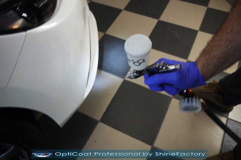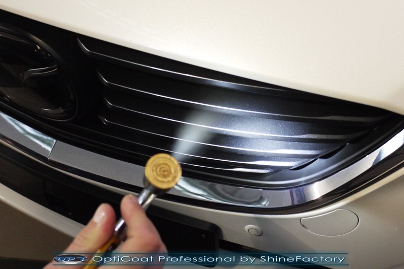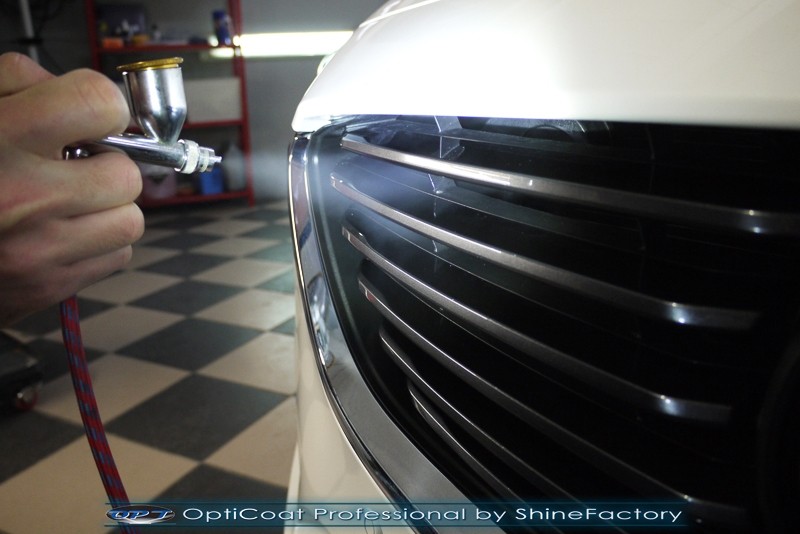 Właściciel dojechał do nas z daleka w celu pełnego zabezpieczenia swojej nowej Mazdy 6 najlepszymi możliwymi powłokami ceramicznymi na nadchodzące trudne warunki. Auto przeszło nasz szeroki pakiet NewShine więc prócz zabezpieczenia kompletem ceramiki nadwozia, zdjęliśmy z auta koła w celu dokładnego detailingu nadkoli oraz wnętrza felg. Całe wnętrze zostało zaimpregnowane kosmetykami najwyższej ligi z naciskiem na zabezpieczenie delikatnych jasnych skóry, el. plastikowych oraz materiałowych. Prace nad nadwoziem rozpoczęliśmy od dokładnego oczyszczenia i odtłuszczenia, następnie perłowo biały lakier został poddany bardzo delikatnej korekcie. Po tych czynnościach przeszliśmy do aplikacji powłok na wszelkie elementy jak lakier, szyby, lampy, felgi itp itd. Najważniejsze, na sam lakier zaaplikowaliśmy maksymalnie grubą natryskową warstwę kompozytu ceramicznego (100% powłoki na aucie) opartego na SiC- OptiCoat Professional połączoną z powłoką GlossCoat, która zapewniła ochronę, zminimalizowane brudzenie oraz ułatwione do maksimum mycie. Finalnie całe auto zostało wygrzane lampami IR w odpowiedniej temperaturze w celu utwardzenia. Zapraszamy do fotorelacji.
