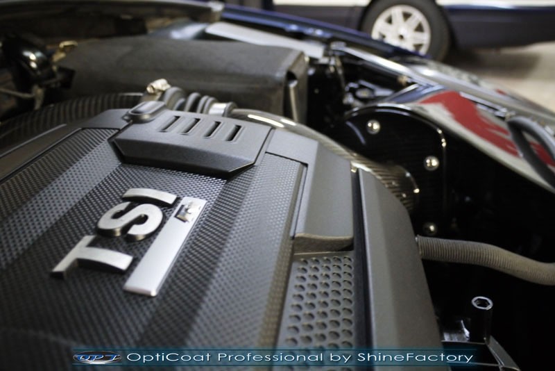 Witamy i zapraszamy do fotorelacji z prac nad VW Golfem w najmocniejszej wersji R. Auto zostało nam ponownie powierzone po przebiegu ok. 40tyś (zabezpieczaliśmy je jako nowe) w celu drobnych poprawek lakieru i ponownej aplikacji powłok ceramicznych. Prace rozpoczęliśmy od dokładnego oczyszczenia auta oraz poprawek lakieru z drobnych swirli. Następnie w celu najmocniejszej możliwej ochrony na lakier trafiła zaaplikowana w innowacyjny natryskowy sposób powłoka ceramiczna OptiCoat Professional 9H+ oparta na SiC z dodatkową warstwą powłoki GlossCoat zapewniając maksymalną grubość i efektywność działania. Następnym naszym zadaniem był detailing wnętrza, głównie skupiając się na skórach, które zostały zaimpregnowane kosmetykami najwyższej ligi przed nadmiernym brudzeniem oraz pękaniem. Nie zapomnieliśmy, także zająć się dokładnie komorą silnika.