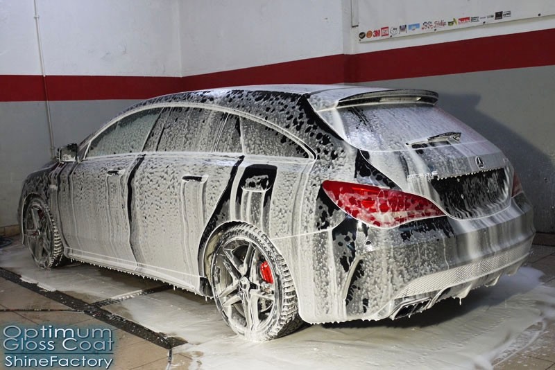 Mercedes został nam powierzony po krótkim okresie użytkowania w celu zabezpieczenia pakietem powłok. Po niedużym przebiegu właściciel zauważył jak delikatny jest lakier w jego nowym Mercedesie AMG i powierzył go nam w celu ochrony. Prace rozpoczęliśmy oczywiście od wieloetapowego oczyszczenia z wszelkich wżartych naleciałości. Następnie musieliśmy koniecznie odświeżyć lakier ponieważ posiadał już bardzo dużo niedoskonałości jak mikrorysy i zmatowienie, jest to konieczne przed aplikacją powłoki. Po wielogodzinnym odświeżeniu na całe auto (szyby, lampy, felgi, plastiki) zaaplikowaliśmy pakiet powłok ochronnych w tym na lakier powłokę Optiumum GlossCoat, która w widoczny sposób nadała maksymalnego połysku i wyrazistości a także nieporównywalnie lepszej ochrony niż wosk. Zapraszamy do krótkiej fotorelacji.