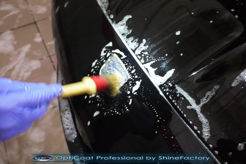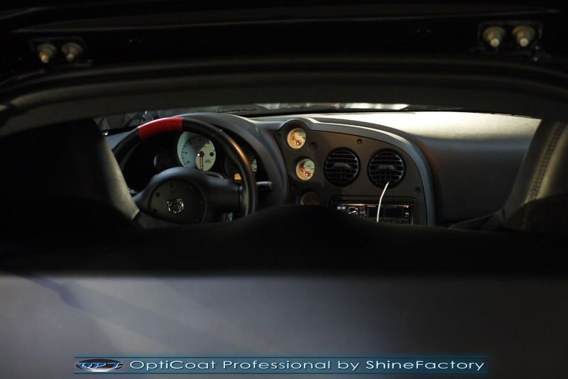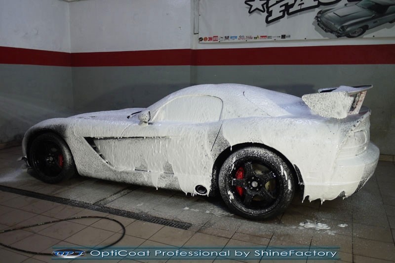 - Viper ACR! Dziś chcemy przedstawić pełną fotorelację z prac nad bardzo rzadkim autem w jeszcze bardziej rzadkiej wersji. Auto zostało nam powierzone w celu przeprowadzenia bezkompromisowego detailing każdego elementu auta oraz najlepszego możliwego finalnego zabezpieczenia. Viper przeszedł nasz najszerszy pakiet prac dlatego też zaczęliśmy od detailngu felg, nadkoli, zacisków hamulcowych a także dogłębnego oczyszczenia lakieru z bardzo mocnych zabrudzeń jak naloty drogowe, smoła, żywica itp. Następnie przystąpiliśmy do etapu wypolerowania bardzo trudnego lakieru (skomplikowane plastikowe nadwozie z czarnym niemetalicznym lakierem) na ideał i usunięcia wszelkich niedoskonałości jak mikrorysy, głębsze zarysowania, wżery czy zmatowienie, po kilku dniach prac nabrał idealnego wyglądu oraz był gotowy do zabezpieczanie powłoką ceramiczną. Finalnie zdecydowaliśmy się zabezpieczyć każdy element auta (szyby, chromy, felgi, klosze lamp, detale itp) najlepszymi powłokami ceramicznymi/kwarcowymi z rynku, sam lakier testowaną w laboratoryjny sposób przez TUV powłoką ceramiczną OptiCoat Professional/GlossCoat w natryskowy sposób co zapewnia maksymalny połysk i grubą ochronę lakieru na bardzo długi czas. Finalnie pakiet powłok został wygrzany w odpowiedniej temperaturze lampami IR. Oczywiście całe wnętrze po dokładnym oczyszczeniu i wypraniu, zostało zabezpieczone różnymi kosmetykami wraz z zaimpregnowaniem skór oraz alkantary. Nie zapomnieliśmy, także o detailingu komory pięknego ogromnego 8.4l silnika V10. Dodge Viper po kilku dniach prac nabrał idealnej prezentacji oraz maksymalnej możliwej ochrony. Zapraszamy do szerokiej fotorelacji i zdjęć efektu końcowego!