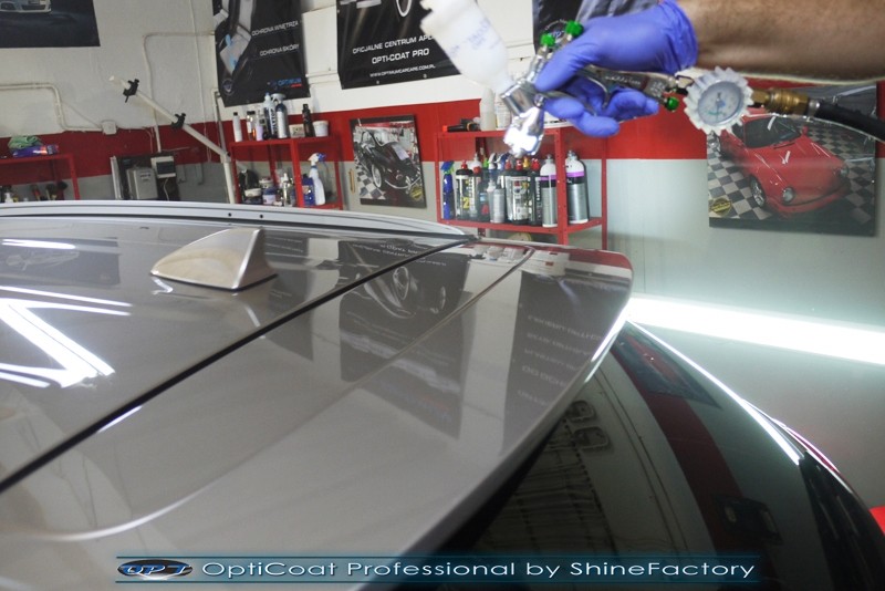 Najnowszy model Hyundai’a w srebrnym kolorze został nam powierzony w celu pełnego zabezpieczenia najlepszymi możliwymi powłokami ceramicznymi na nadchodzące trudne warunki. Auto przeszło nasz szeroki pakiet NewShine więc prócz zabezpieczenia kompletem ceramiki nadwozia, zdjęliśmy z auta koła w celu dokładnego detailingu nadkoli oraz wnętrza felg. Całe wnętrze zostało zaimpregnowane kosmetykami najwyższej ligi, z naciskiem na elementy skórzane, plastikowe oraz materiałowe. Prace nad nadwoziem rozpoczęliśmy od dokładnego oczyszczenia i odtłuszczenia, następnie lakier w bardzo ładnym stanie został tylko poddany bardzo delikatnej korekcie. Po tych czynnościach przeszliśmy do aplikacji powłok na wszelkie elementy jak lakier, szyby, lampy, felgi itp itd. Najważniejsze, na sam lakier zaaplikowaliśmy maksymalnie grubą natryskową warstwę kompozytu ceramicznego (100% powłoki na aucie) opartego na SiC- OptiCoat Professional połączoną z powłoką GlossCoat, która zapewniła ochronę, zminimalizowane brudzenie oraz ułatwione do maksimum mycie. Finalnie całe auto zostało wygrzane lampami IR w odpowiedniej temperaturze w celu utwardzenia. Zapraszamy do fotorelacji.