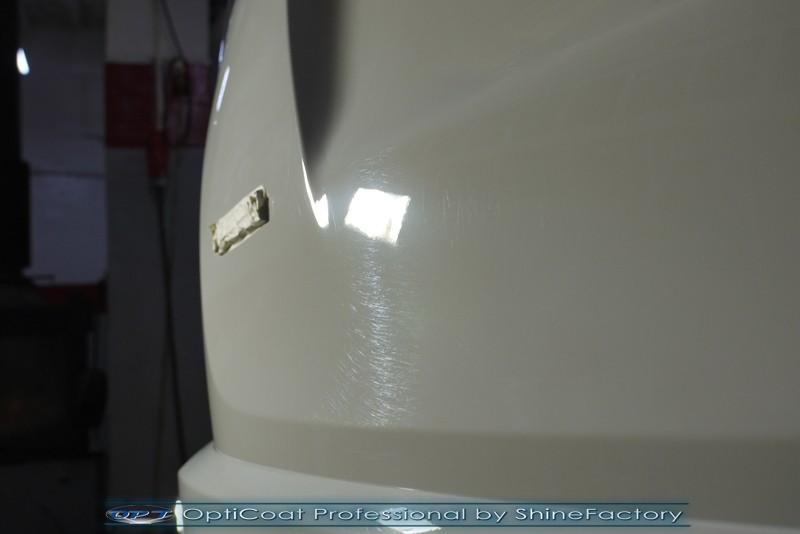 Najnowszy model hybrydowej Toyoty Rav4 w białym kolorze został nam powierzony w celu pełnego zabezpieczenia najlepszymi możliwymi powłokami ceramicznymi na trudne zimowe warunki. Auto przeszło nasz szeroki pakiet NewShine więc prócz zabezpieczenia kompletem ceramiki nadwozia, zdjęliśmy z auta koła w celu dokładnego detailingu nadkoli oraz wnętrza felg. Całe wnętrze zostało zaimpregnowane kosmetykami najwyższej ligi z naciskiem na zabezpieczenie delikatnych jasnych skóry, el. plastikowych oraz materiałowych. Prace nad nadwoziem rozpoczęliśmy od dokładnego oczyszczenia i odtłuszczenia, następnie lakier został poddany bardzo delikatnej korekcie. Po tych czynnościach przeszliśmy do aplikacji powłok na wszelkie elementy jak lakier, szyby (bezapelacyjnie najlepszą powłoką Gtechniq G1), lampy, felgi (pancerny CQ DLUX) itp itd. Najważniejsze, na sam lakier zaaplikowaliśmy maksymalnie grubą natryskową warstwę kompozytu ceramicznego (100% powłoki na aucie) opartego na SiC- OptiCoat Professional połączoną z powłoką GlossCoat, która zapewniła ochronę, zminimalizowane brudzenie oraz ułatwione do maksimum mycie. Finalnie całe auto zostało wygrzane lampami IR w odpowiedniej temperaturze w celu utwardzenia. Zapraszamy do fotorelacji.