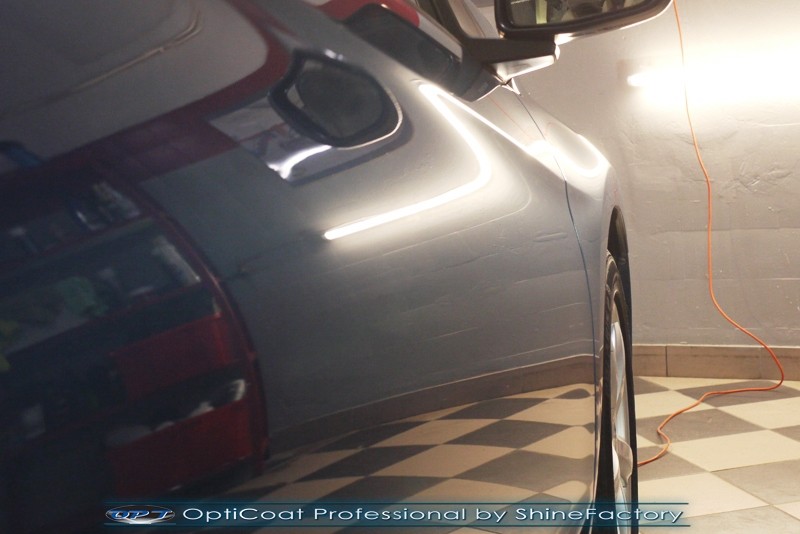 Klient po zakupie powierzył nam swoje nowe auto w celu maksymalnego odświeżenia aby ponownie wyglądało jak z salonu. Zaczęliśmy od detailngu felg oraz nadkoli a także dogłębnego oczyszczenia lakieru. Następnie przystąpiliśmy do najbardziej czasochłonnego i najważniejszego etapu prac czyli pełnej korekty zniszczonego lakieru, usunęliśmy wszelkie niedoskonałości jak mikrorysy, obcierki, głębsze zarysowania, wżery, naleciałości i zmatowienie. Po kilku dniach renowacji nadwozia zdecydowaliśmy zabezpieczyć, każdy element auta najlepszymi powłokami ceramicznymi/kwarcowymi z rynku, sam lakier testowaną w laboratoryjny sposób przez TUV powłoką ceramiczną OptiCoat Professional/GlossCoat w innowacyjny natryskowy sposób co zapewnia maksymalny połysk i grubą ochronę lakieru na bardzo długi czas. Finalnie pakiet powłok został wygrzany w odpowiedniej temperaturze lampami IR. Oczywiście Honda przeszła, także bardzo dokładnym detailing wnętrza, wszelkie el. plastikowe zostały oczyszczony i zabezpieczone, materiały wyprane ekstrakcyjnie. Nie zapomnieliśmy, także o zajęciu się komorą silnika. Dzięki detailingowi oraz finalnemu pokryciu ceramiką, auto ponownie wygląda jak nowe i cieszy oko właściciela. Zapraszamy do szerokiej fotorelacji i zdjęć efektu końcowego!