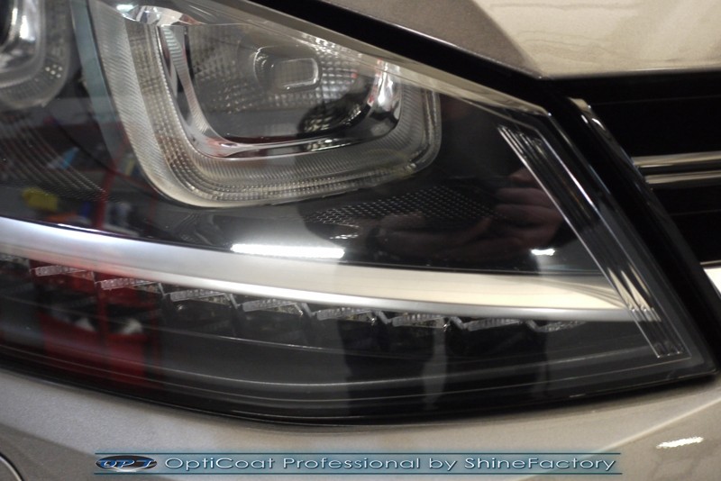 Dziś przedstawiamy krótką fotorelację z oklejenia pakietem bezbarwnych folii ochronnych Premium Shield Elite VW Golfa R. Auto 19 tyś. km temu, jeszcze jako nowe odwiedziło nas w celu zaaplikowania ceramiki, do tej pory sprawuje się świetnie i chroni lakier, natomiast właściciel poprosił nas o oklejenie frontu bezbarwnymi foliami najwyższej jakości aby auto uodpornić już na 100% także przed mocnymi mechanicznymi uszkodzeniami jak np. odpryski od kamieni na przednich elementach, mocnymi rysami np. od paznokci we wnękach klamek czy góry tylnego zderzaka (uszkodzenia od wkładania rzeczy do bagażnika). Tak też zrobiliśmy. Oczywiście zdecydowaliśmy się jak zawsze wybrać produkt bezkonkurencyjny i nowoczesny na rynku, czyli folie Premium Shield Elite. Dokładnie oklejone zostały:
