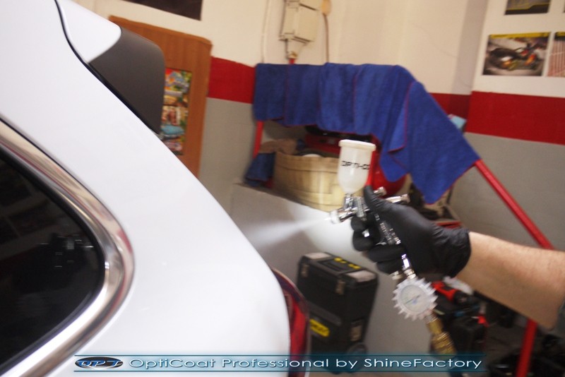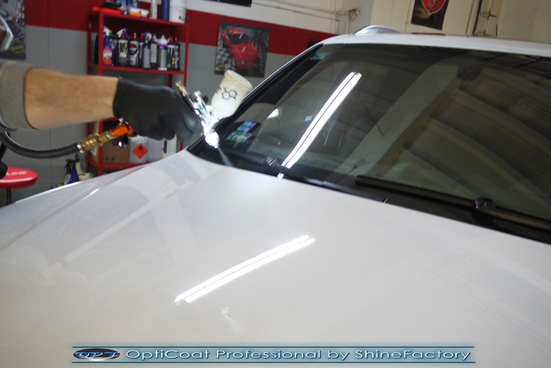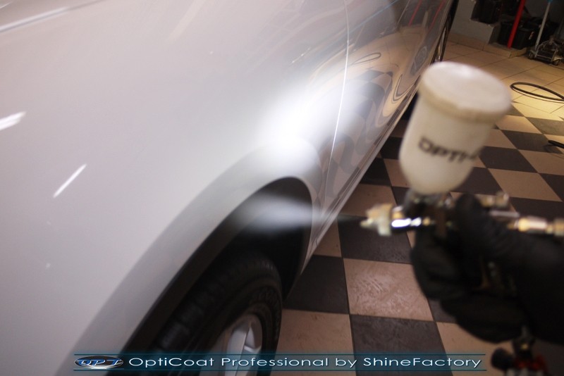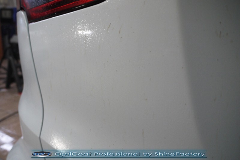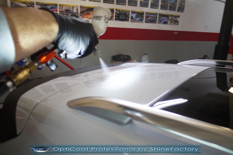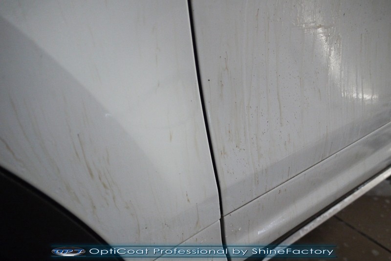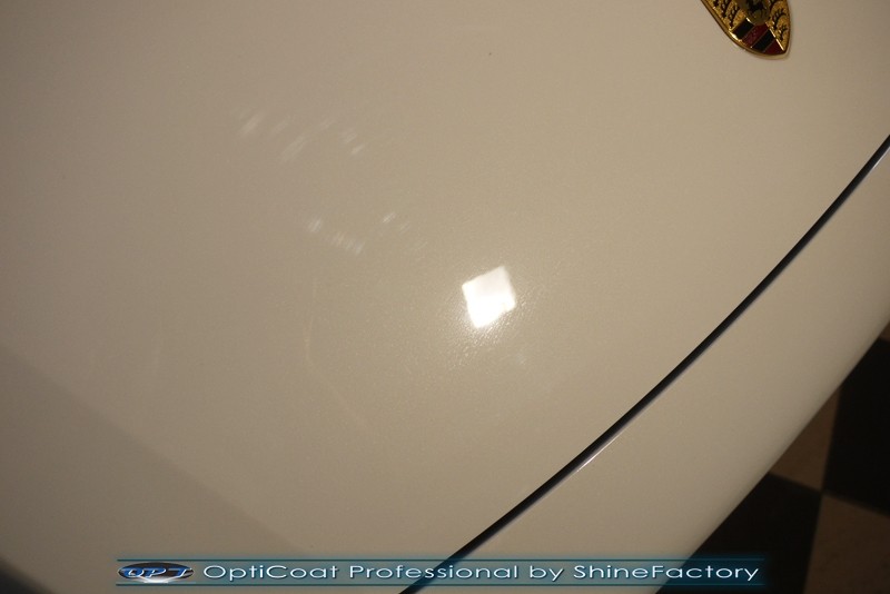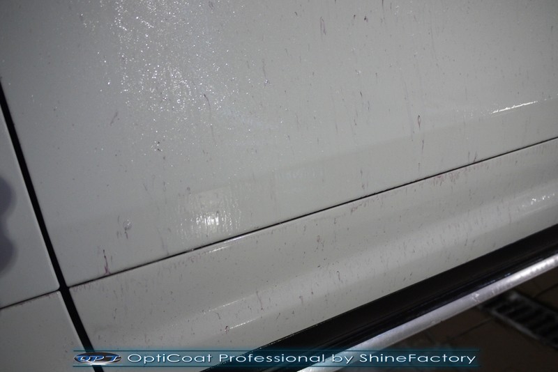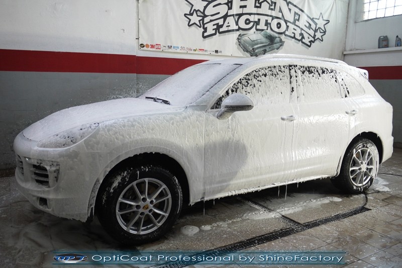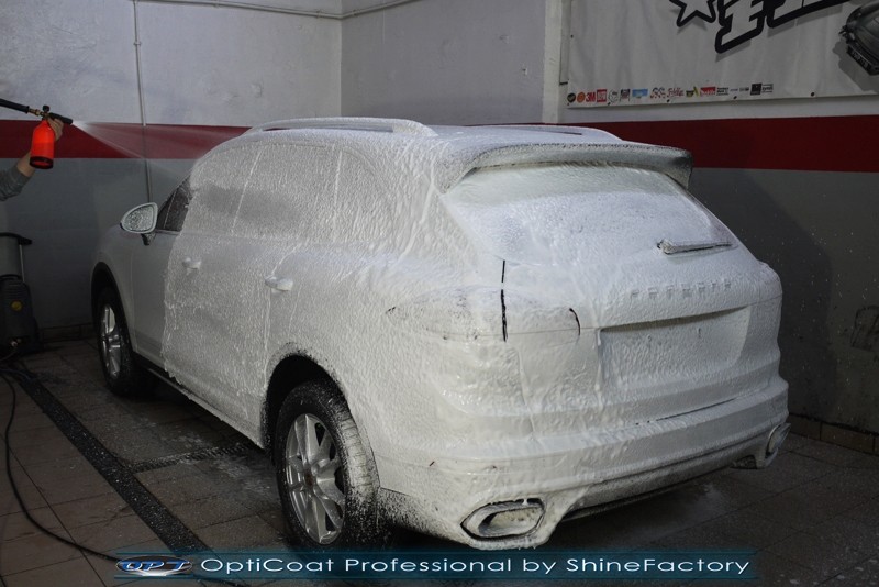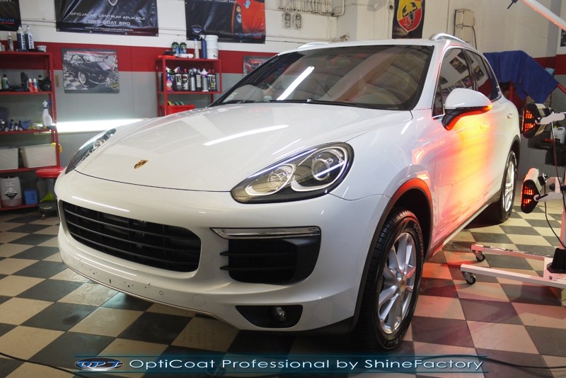 Witamy! Dziś pragniemy zaprosić do szerokiej fotorelacji z zabezpieczenia białego Porsche Cayenne z przebiegiem kilkudziesięciu kilometrów . Właściciel poprosił o maksymalnie dobre zabezpieczenie każdego detalu auta. Standardowo prace rozpoczęliśmy od zdjęcia kół, dzięki czemu mogliśmy dokładnie oczyścić i zabezpieczyć nadkola oraz felgi od wewnątrz. Następnie przeprowadziliśmy dekontaminację i wyglinkowaliśmy nadwozie. Sam lakier posiadał drobne niedoskonałości które musieliśmy koniecznie usunąć i uzyskać jak najlepszą powierzchnię pod powłokę. Po odświeżeniu lakieru zaaplikowaliśmy grubą warstwę natryskowej powłoki certyfikowanej przez TUV- OptiCoat Professional z dodatkową warstwą GlossCoat. Następnie pokryliśmy resztę elementów dedykowanymi powłokami, między innymi szyby czy felgi, poddaliśmy pielęgnacji el. plastikowe i chromowane, po czym wygrzaliśmy całe auto w wysokiej temperaturze lampami IR. Całe wnętrze zostało poddane kompleksowemu detailingowi, skóry zostały oczyszczone i zaimpregnowane, podobnie reszta elementów. Porsche po kilku dniach prac nabrało idealnego wyglądu, lakier śnieżnej bieli i ochrony na bardzo długi czas co ułatwi do maksimum utrzymanie auta w idealnym stanie na lata. Zapraszamy do relacji!