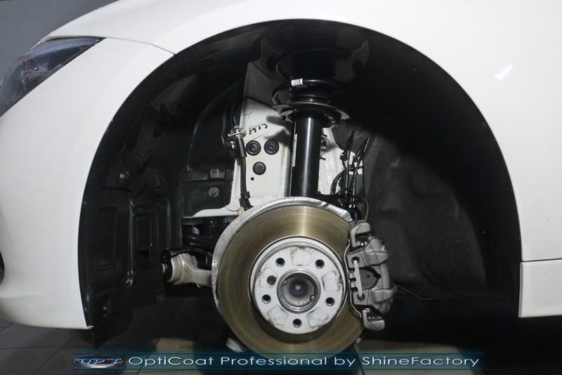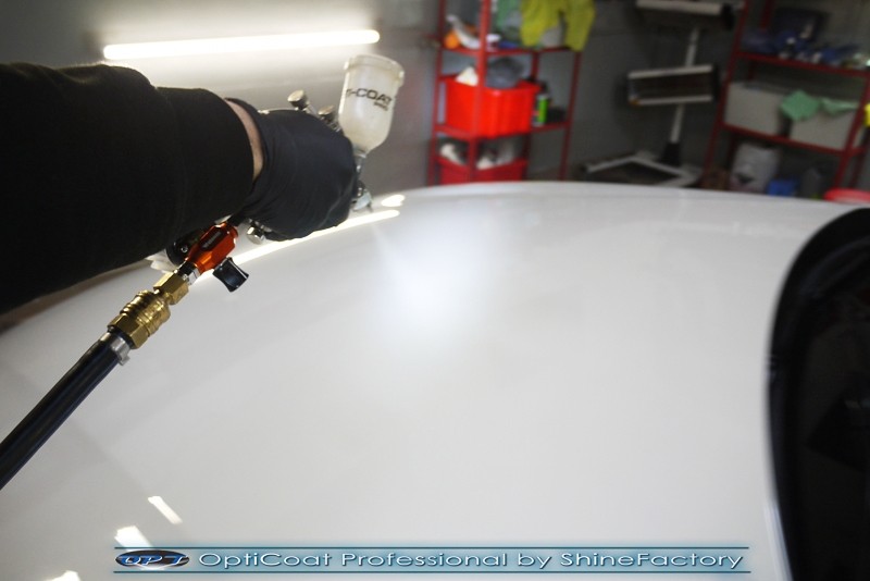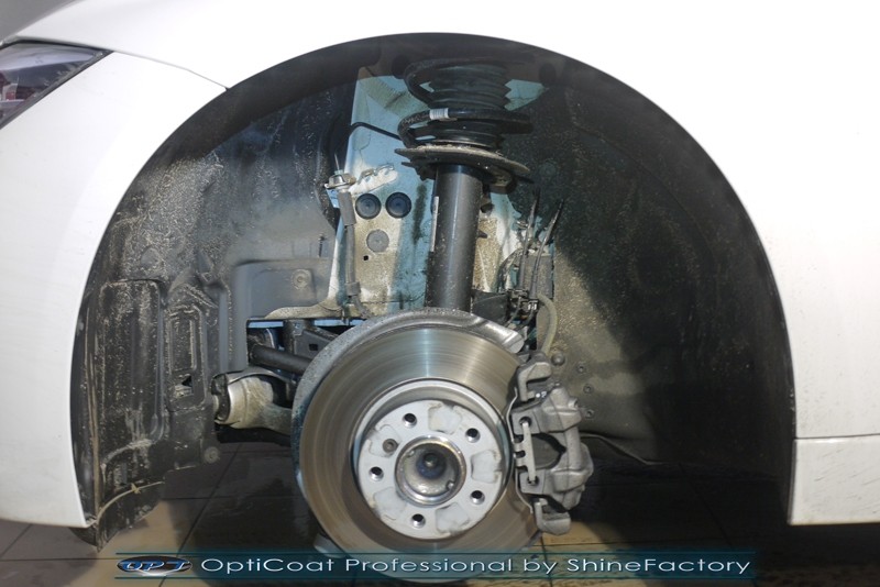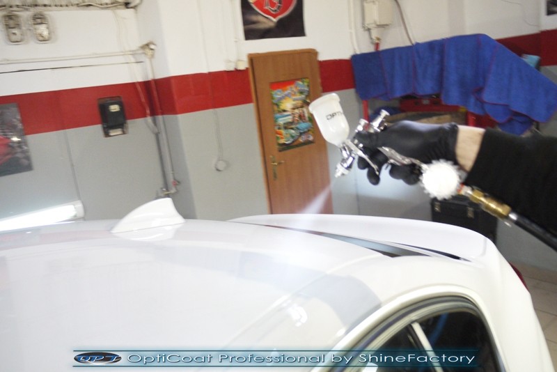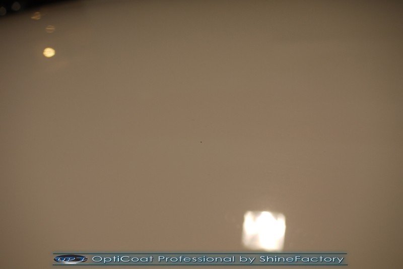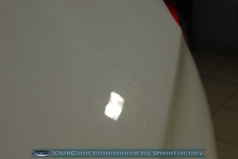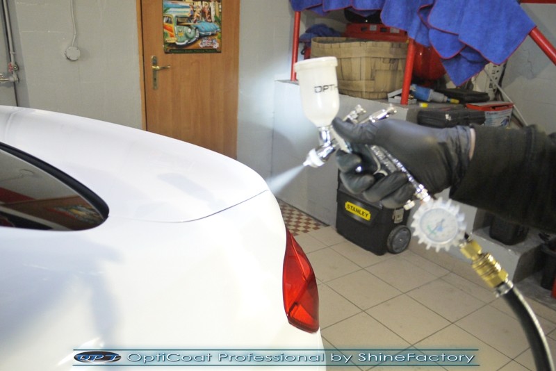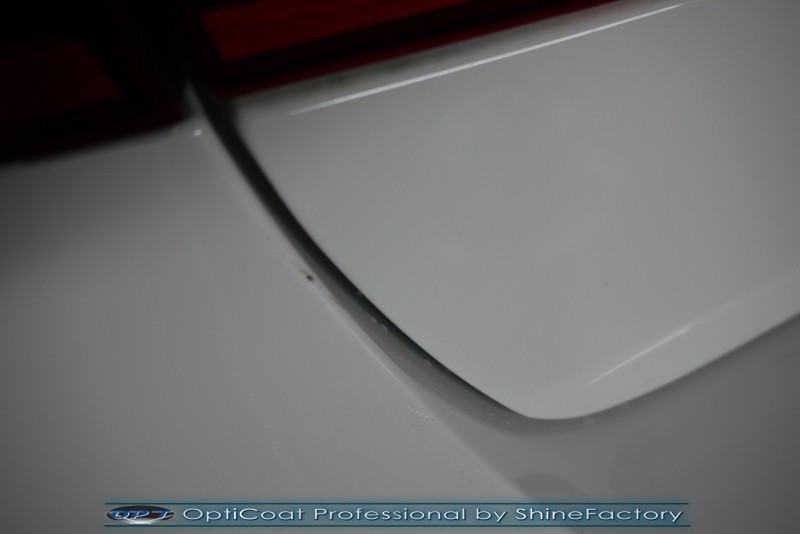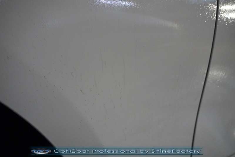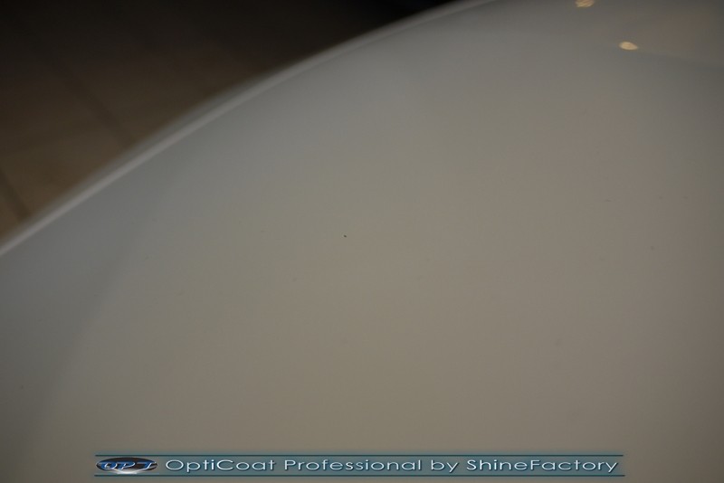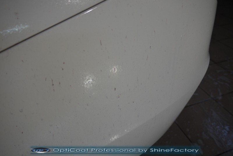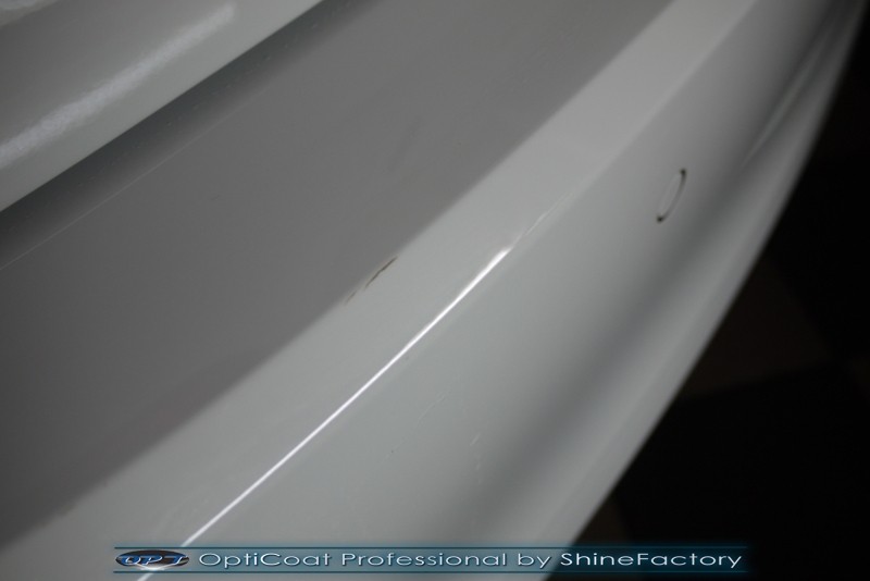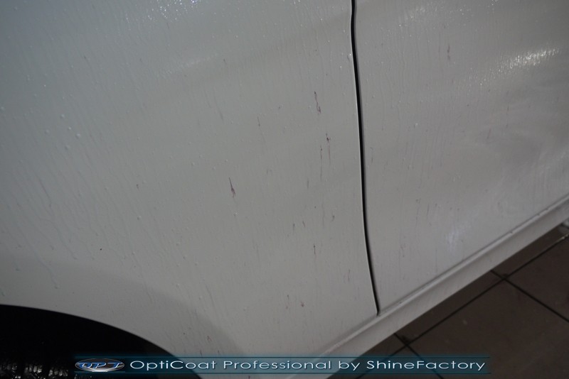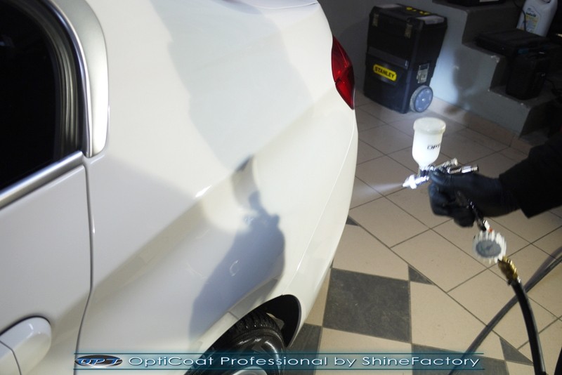 Auta w białym lakierze są naszymi bardzo częstymi gośćmi, to właśnie na nich widać wszelkie wgryzione naleciałości i zmatowienie, które psuje perfekcyjny śnieżno biały wygląd. Tym razem właśnie w takim kolorze zostało nam powierzone BMW serii 3 praktycznie prosto z salonu. Prace zaczęliśmy od demontażu kół w celu dokładnego zabezpieczenia nadkoli oraz wnętrza felg, następnie w specjalistyczny sposób dokładnie oczyszczone zostało całe nadwozie (z już bardzo dużej ilości wgryzionych w niezabezpieczony lakier naleciałości drogowych). Następną czynnością było skorygowanie lakieru i usunięcie wszelkich mikrorys, sam właściciel zwrócił już na to uwagę w salonie i poprosił nas na zwrócenie na to szczególnej uwagi. Po dokładnym skorygowaniu lakieru i odtłuszczeniu zaaplikowaliśmy w natryskowy sposób grubą warstwę powłoki OptiCoat Professional plus dodatkową warstwę GlossCoat, która zapewni maksymalny połysk i śliskość lakieru. Oczywiście całe wnętrze zostało zabezpieczone różnymi kosmetykami w najdrobniejszym detalu wraz z zaimpregnowaniem delikatnych jasnych skór. Pamiętaliśmy także o zabezpieczeniu komory silnika. Auto po kilku dniach prac nabrało idealnego połysku i co najważniejsze najlepszej ochrony co zapewni zminimalizowane brudzenie oraz banalne utrzymanie auta w perfekcyjnym stanie. Zapraszamy do szerokiej fotorelacji i zdjęć efektu końcowego!