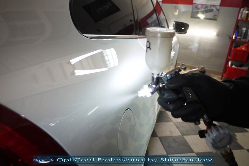 Biały SUV marki Volvo został nam oddany przy przebiegu nie przekraczającym 1000km. Właściciel poprosił o mocny pakiet powłok ochronnych na zewnątrz auta. Dwu dniowe prace rozpoczęliśmy od dokładnego oczyszczenia nadwozia, usunęliśmy sporą ilość osadów drogowych, które już wżarły się w niczym niezabezpieczony biały lakier (usunięcie lotnej rdzy/smoły, wyglinkowanie lakieru). Lakier w bardzo ładnym stanie, nie wymagającym korekt, pozwolił nam szybko przejść do odtłuszczenia oraz aplikacji najlepszych na rynku powłok na nadwozie. Kolejno zabezpieczyliśmy felgi powłoką DLUX, szyby Gtechniq G1, nie pominęliśmy detali jak klosze lamp, el. nielakierowane czy chromowane. Na sam lakier zaaplikowaliśmy w natryskowy sposób grubą warstwę powłoki OptiCoat Professional plus dodatkową warstwę GlossCoat, która zapewni maksymalny połysk i śliskość lakier. Finalnie całe auto zostało wygrzane w wysokiej temperaturze lampami IR. XC60 po kilku dniach prac nabrało idealnego połysku, śnieżnej bieli oraz najlepszej ochrony co zapewni zminimalizowane brudzenie oraz banalne utrzymanie auta w perfekcyjnym stanie na bardzo długi czas. Zapraszamy do szerokiej fotorelacji i zdjęć efektu końcowego!
