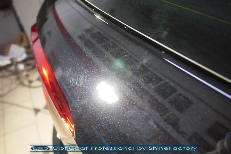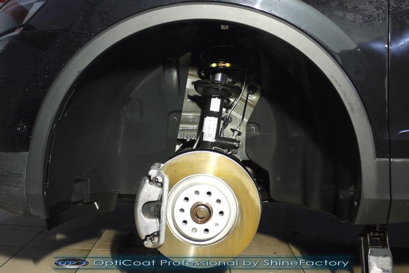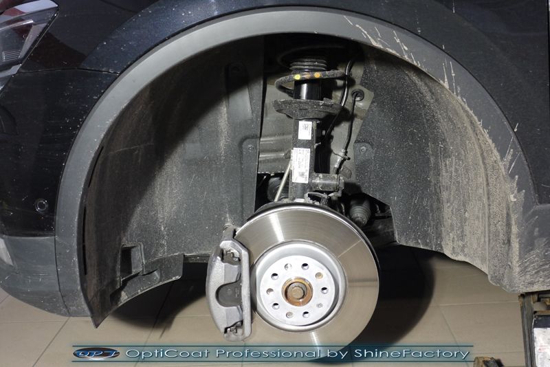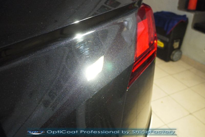 Witamy! Dziś zapraszamy do fotorelacji z zabezpieczenia najnowszego modelu VW Tiguan’a w czarnym kolorze, który został nam powierzony zaraz po wyjeździe z salonu w celu jak najgrubszego i jak najmocniejszego możliwego zabezpieczenia powłoką ceramiczną. Zdecydowaliśmy się zabezpieczyć każdy element auta najlepszymi powłokami z rynku. Szyby (bezapelacyjnie najlepszą powłoką Gtechniq G1), lampy, felgi (pancerny CQ DLUX) itp itd, sam lakier, aby uzyskać jak najgrubszą warstwę w natryskowy sposób, testowaną laboratoryjnie przez TUV ceramiką OptiCoat Professional. Oczywiście najpierw auto musiało zostać w specjalistyczny sposób dokładnie oczyszczone, następnie koniecznością przed aplikacją tak zaawansowanego zabezpieczenia konieczne było odświeżenie lakieru ze sporej ilości mikrorys. Po dokładnym przygotowaniu i odtłuszczeniu oraz precyzyjnym natryskowym zaaplikowaniu powłoki OC PRO lakier pokryliśmy dodatkową warstwą GlossCoat, która zapewniła maksymalny połysk i śliskość lakieru na wiele lat. Oczywiście całe wnętrze zostało zabezpieczone różnymi kosmetykami w najdrobniejszym detalu. Pamiętaliśmy także o zabezpieczeniu komory silnika oraz po zdjęciu kół aplikacji powłoki na felgi, nadkola czy zaciski hamulcowe. Auto po kilku dniach prac nabrało idealnego połysku i co najważniejsze najlepszej ochrony co zapewni zminimalizowane brudzenie oraz banalne utrzymanie auta w perfekcyjnym stanie na bardzo długi czas. Zapraszamy do szerokiej fotorelacji i zdjęć efektu końcowego!