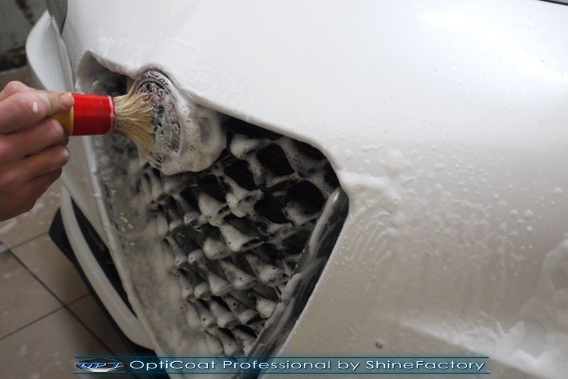 Dziś chcemy przedstawić Państwu szeroką relację z perfekcyjnego i obecnie najbardziej zaawansowanego możliwego pakietu zabezpieczenia nowego samochodu. Piękna Alfa Giulia Quadrifoglio w perłowo białym lakierze została nam powierzona abyśmy zabezpieczyli ją dosłownie od A do Z, wszelkimi możliwymi sposobami na światowym poziomie. Oczywiście prace rozpoczęliśmy od zdjęcia z auta kół i zabezpieczenia nadkoli, felg oraz zacisków hamulcowych powłokami ceramicznymi. Kolejno przeszliśmy do dokładnego oczyszczenia całego nadwozia z naleciałości oraz zabezpieczeń fabrycznych i dogłębnego wyglinkowania lakieru. Następnie przystąpiliśmy do aplikacji bezbarwnych folii ochronnych na najbardziej narażone na mocne uszkodzenia el. auta, oczywiście zdecydowaliśmy się jak zawsze wybrać produkt bezkonkurencyjny i nowoczesny na rynku, czyli folie Premium Shield Elite. Po aplikacji folii przeszliśmy do zabezpieczanie wszelkich el. auta powłokami, zaaplikowaliśmy w natryskowy sposób grubą warstwę powłoki 9H+ Optimum OptiCoat Professional potwierdzoną testami TUV, pokrywając ją dla maksymalnego efektu wizualnego powłoką GlossCoat, która na końcu została utwardzona w odpowiedniej temp. lampami IR. Oczywiście zajęliśmy się, także zabezpieczeniem pakietem powłok wszelkich innych elementów jak szyby (Gtechniq G1), felgi (DLUX), lampy czy elementy nielakierowane . Nie mogliśmy pominąć komory silnika pięknej Włoszki oraz całym bogato wyposażonym wnętrzem aby zabezpieczyć je w każdym detalu różnymi kosmetykami. Po kilkudziesięciu godzinach pracy Giulia nabrała perfekcyjnego wyglądu, połysku oraz co najważniejsze najmocniejszej praktycznie pancernej ochrony na lata. Zapraszamy do szerokiej fotorelacji!