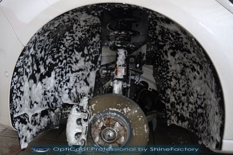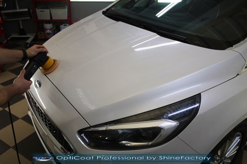Dziś zapraszamy do relacji z zabezpieczenia salonowego Forda S-Max w ekskluzywnej wersji Vignale. Celem prac było przeprowadzenie szerokiego pakietu detailingu dla nowych aut NewShine i zabezpieczenie pakietem powłok ceramicznych perłowego lakieru White Platinum. Oczywiście prace rozpoczęliśmy od zdjęcia z auta kół i zabezpieczenia nadkoli oraz felg. Następnie przeszliśmy do dokładnego oczyszczenia całego nadwozia z naleciałości oraz zabezpieczeń fabrycznych i dogłębnego wyglinkowania lakieru. Następnie poprawiliśmy niedoskonałości pofabryczne oraz zaaplikowaliśmy w natryskowy sposób grubą warstwę powłoki 9H+ Optimum OptiCoat Professional potwierdzoną testami TUV, pokrywając ją dla maksymalnego efektu wizualnego powłoką GlossCoat, która na końcu została utwardzona w odpowiedniej temp. lampami IR. Oczywiście zajęliśmy się, także zabezpieczeniem pakietem powłok wszelkich innych elementów jak szyby (Gtechniq G1), felgi (DLUX), lampy czy elementy nielakierowane . Zajęliśmy się, także komorą silnika oraz całym wnętrzem aby zabezpieczyć je w każdym detalu różnymi kosmetykami. Po kilkudziesięciu godzinach pracy auto nabrało perfekcyjnego wyglądu, połysku oraz co najważniejsze najmocniejszej ceramicznej ochrony na bardzo długi czas. Zapraszamy do szerokiej fotorelacji!