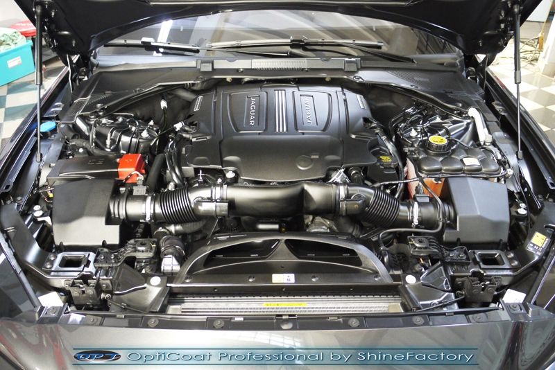 Witamy! Dziś zapraszamy do fotorelacji z prac nad Jaguarem czystej krwi czyli modelem XE-S. Został nam powierzony niedługo po wyjeździe z salonu w celu jak najgrubszego i jak najmocniejszego możliwego zabezpieczenia powłoką ceramiczną. Oczywiście prace rozpoczęły się od dokładnego mycia i dogłębnego oczyszczeni całego nadwozia. Lakier został odtłuszczony i poddany inspekcji, następnie poddany delikatnej korekcie w celu usunięcia pofabrycznych/salonowych niedoskonałości oraz kilku głębszych rys. Po tych czynnościach przeszliśmy do aplikacji powłok na wszelkie elementy jak lakier, szyby (bezapelacyjnie najlepszą powłoką Gtechniq G1), felgi (pancerny CQ DLUX) itp itd. Najważniejsze, na sam lakier zaaplikowaliśmy maksymalnie grubą natryskową warstwę kompozytu ceramicznego (100% powłoki na aucie) opartego na SiC- OptiCoat Professional połączoną z powłoką GlossCoat, która zapewni niesamowity połysk, ochronę, zminimalizowane brudzenie oraz ułatwione do maksimum mycie. Finalnie całe auto zostało wygrzane lampami IR w odpowiedniej temperaturze w celu utwardzenia. Całe wnętrze Jaguara zostało zaimpregnowane kosmetykami najwyższej ligi, szczególnie delikatne skóry. Nie pominęliśmy, także komory silnika V6 Turbo.