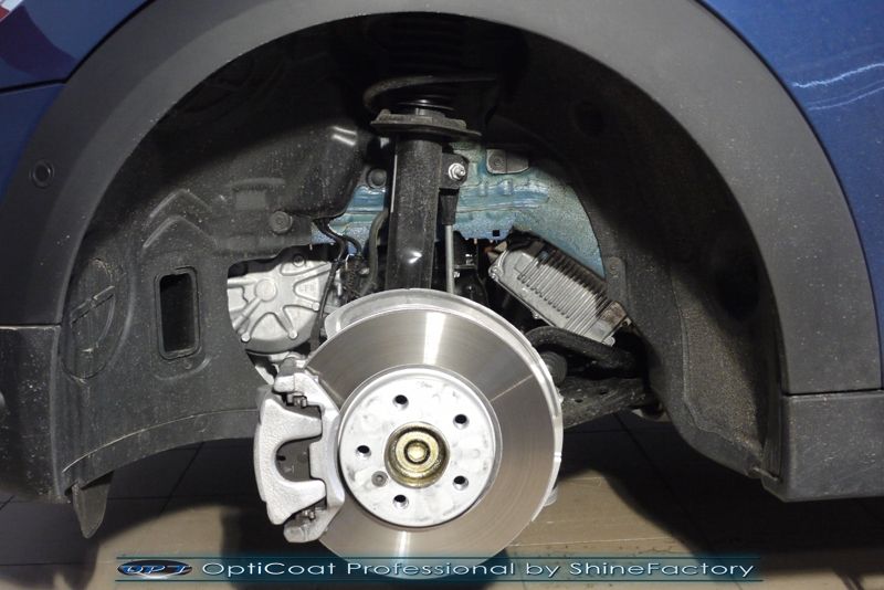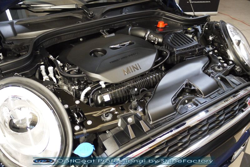 Oczywiście prace rozpoczęliśmy od zdjęcia z auta kół i zabezpieczenia nadkoli, felg oraz zacisków hamulcowych powłokami ceramicznymi. Kolejno przeszliśmy do dokładnego oczyszczenia całego nadwozia z naleciałości oraz usunięcia już zaistniałych uszkodzeń jak wżery po owadach, mikrorys czy zmatowień. Następnie przystąpiliśmy do aplikacji bezbarwnych folii ochronnych na najbardziej narażone na mocne uszkodzenia el. auta, oczywiście zdecydowaliśmy się jak zawsze wybrać produkt bezkonkurencyjny i nowoczesny na rynku, czyli folie Premium Shield Elite. Po aplikacji folii przeszliśmy do zabezpieczania wszelkich el. auta powłokami, zaaplikowaliśmy w natryskowy sposób grubą warstwę powłoki 9H+ Optimum OptiCoat Professional potwierdzoną testami TUV, pokrywając ją dla maksymalnego efektu wizualnego powłoką GlossCoat, która na końcu została utwardzona w odpowiedniej temp. lampami IR. Oczywiście zajęliśmy się, także zabezpieczeniem pakietem powłok wszelkich innych elementów jak szyby (Gtechniq G1), felgi (DLUX), lampy czy elementy nielakierowane . Nie pominęliśmy zajęcia się komorą silnika oraz wnętrzem aby zabezpieczyć je w każdym detalu różnymi kosmetykami. Po kilkudziesięciu godzinach pracy Mini nabrało perfekcyjnego wyglądu, połysku oraz co najważniejsze najmocniejszej praktycznie pancernej ochrony na lata. Zapraszamy do szerokiej fotorelacji!