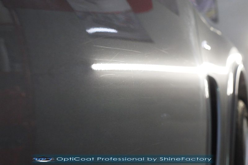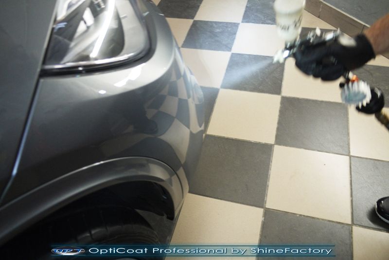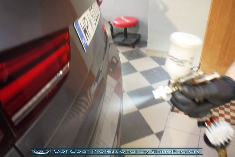 BMW X5 w potężnej wersji M50d, zostało nam powierzone w celu kompleksowego detailingu oraz zabezpieczenia aby po kilku latach intensywnego użytkowania było ponowie jak nowe oraz w pełni zabezpieczone na kolejne. Zaczęliśmy od wieloetapowego dogłębnego oczyszczenia lakieru z wszelkich naleciałości (smoła z drogi, żywica z drzew), oczyszczenia felg oraz nadkoli. Następnie przystąpiliśmy do pełnej korekty lakieru, usunęliśmy wszelkie niedoskonałości jak zmatowienie, głębsze oraz płytsze rysy, ogromną ilość głębokich wżerów. Po kilku dniach prac nabrał idealnego wyglądu oraz był gotowy do zabezpieczanie powłoką ceramiczną. Finalnie pokryliśmy lakier testowaną w laboratoryjny sposób przez TUV powłoką ceramiczną OptiCoat Professional/GlossCoat w innowacyjny natryskowy sposób co zapewnia maksymalny połysk i grubą ochronę lakieru na bardzo długi czas. Oczywiście zajęliśmy się, także zabezpieczeniem pakietem powłok wszelkich innych elementów jak szyby (Gtechniq G1), felgi (DLUX), lampy itp. Finalnie pakiet powłok został wygrzany w odpowiedniej temperaturze lampami IR. Oczywiście BMW przeszeło, także bardzo dokładnym detailing wnętrza, wszelkie el. plastikowe zostały oczyszczone i zabezpieczone, materiały wyprane ekstrakcyjnie, skóry oczyszczone i zaimpregnowane. Nie zapomnieliśmy, także o zajęciu się komorą silnika. X5 dzięki detailingowi oraz finalnemu pokryciu ceramiką zyskało perfekcyjną prezentację, połysk oraz bardzo mocną ochronę na bardzo długi czas. Zapraszamy do szerokiej fotorelacji i zdjęć efektu końcowego!