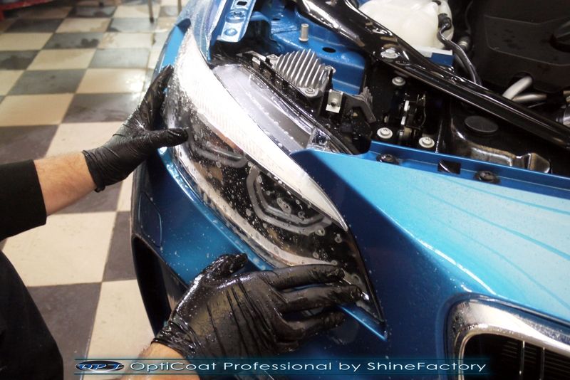Oczywiście prace rozpoczęliśmy od zdjęcia z auta kół i zabezpieczenia nadkoli, felg oraz zacisków hamulcowych powłokami ceramicznymi. Kolejno przeszliśmy do dokładnego oczyszczenia całego nadwozia z naleciałości oraz usunięcia już zaistniałych uszkodzeń jak wżery po owadach, mikrorys czy zmatowień. Następnie przystąpiliśmy do aplikacji bezbarwnych folii ochronnych na najbardziej narażone na mocne uszkodzenia el. auta, oczywiście zdecydowaliśmy się jak zawsze wybrać produkt bezkonkurencyjny i nowoczesny na rynku, czyli folie Premium Shield Elite. Po aplikacji folii przeszliśmy do zabezpieczania wszelkich el. auta powłokami, zaaplikowaliśmy w natryskowy sposób grubą warstwę powłoki 9H+ Optimum OptiCoat Professional potwierdzoną testami TUV, pokrywając ją dla maksymalnego efektu wizualnego powłoką GlossCoat, która na końcu została utwardzona w odpowiedniej temp. lampami IR. Oczywiście zajęliśmy się, także zabezpieczeniem pakietem powłok wszelkich innych elementów jak szyby (Gtechniq G1), felgi (DLUX), lampy czy elementy nielakierowane . Nie pominęliśmy zajęcia się komorą silnika oraz wnętrzem aby zabezpieczyć je w każdym detalu różnymi kosmetykami. Po kilkudziesięciu godzinach pracy BMW nabrało perfekcyjnego wyglądu, połysku oraz co najważniejsze najmocniejszej praktycznie pancernej ochrony na lata. Zapraszamy do szerokiej fotorelacji!