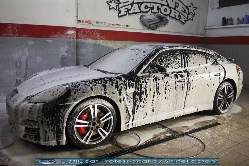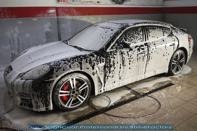 Witamy! Porsche Panamera w wersji Turbo zostało nam powierzone po kilku latkach użytkowania w celu kompleksowego detailingu oraz pokrycia ceramiką na przyszłe lata a szczególnie coraz trudniejsze jesienno/zimowe warunki. Zaczęliśmy od detailingu felg oraz nadkoli a także dogłębnego oczyszczenia lakieru. Następnie przystąpiliśmy do najbardziej czasochłonnego i najważniejszego etapu prac czyli pełnej korekty zniszczonego lakieru, usunęliśmy wszelkie niedoskonałości i zmatowienie, po kilku dniach prac był gotowy do zabezpieczanie powłoką ceramiczną. Finalnie zdecydowaliśmy się zabezpieczyć każdy element (lakier, felgi, szyby itp) najlepszymi powłokami ceramicznymi/kwarcowymi z rynku, sam lakier testowaną w laboratoryjny sposób przez TUV powłoką ceramiczną OptiCoat Professional/GlossCoat w innowacyjny natryskowy sposób co zapewnia maksymalny połysk i grubą ochronę lakieru na bardzo długi czas. Finalnie pakiet powłok został wygrzany w odpowiedniej temperaturze lampami IR. Oczywiście Panamera przeszła, także bardzo dokładny detailing wnętrza, wszelkie el. plastikowe zostały oczyszczony i zabezpieczone, materiały wyprane ekstrakcyjnie, jasne skóry oczyszczone i zaimpregnowane. Nie zapomnieliśmy, także o zajęciu się komorą silnika. Porsche dzięki detailingowi oraz finalnemu pokryciu ceramiką odmieniło się nie do poznania oraz przez długi czas będzie cieszyło oko idealną prezentacją lakieru i maksymalnym blaskiem. Zapraszamy do szerokiej fotorelacji i zdjęć efektu końcowego!