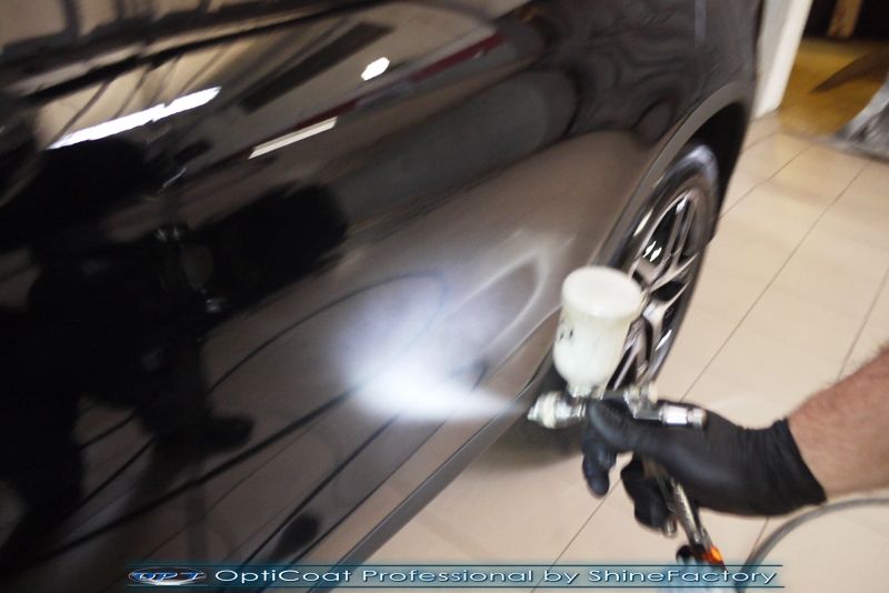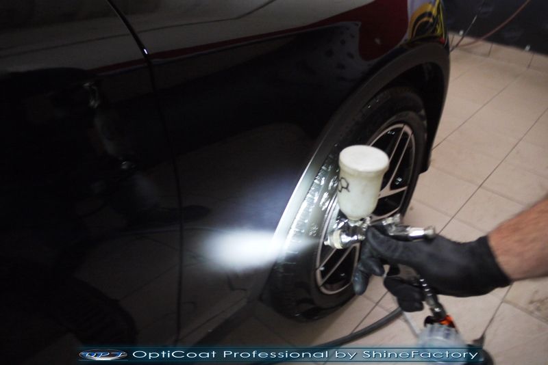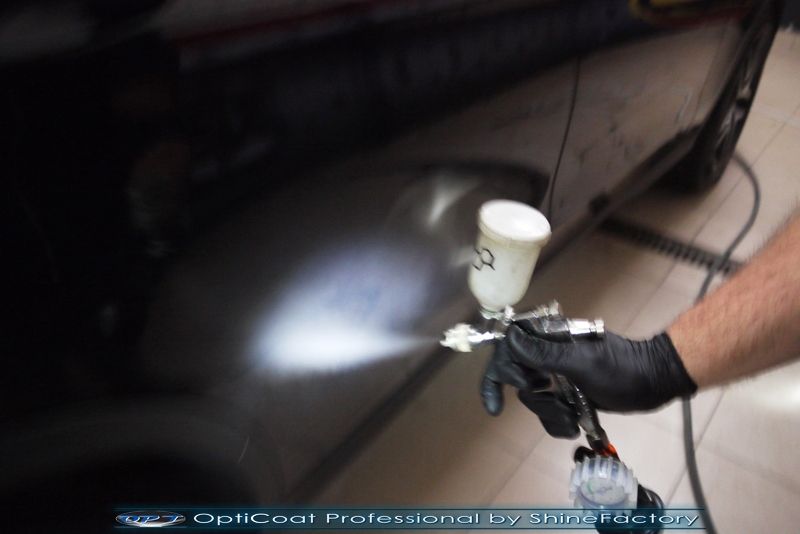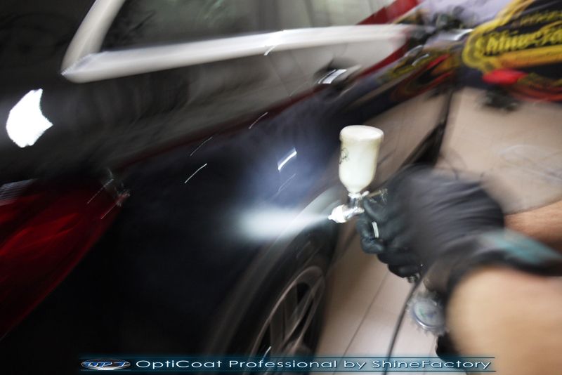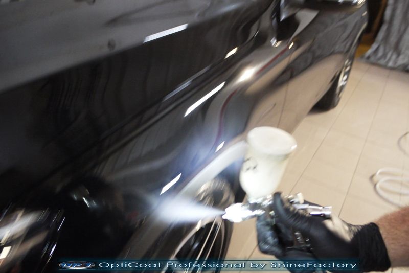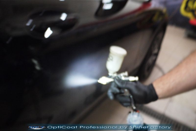 Mercedes GLC w delikatnym czarnym lakierze został nam oddany chwile po odebraniu z salonu w celu maksymalnie dobrego zabezpieczenia nadwozia pakietem powłok ceramicznych. Standardowo prace rozpoczęliśmy od dokładnego i dogłębnego oczyszczenia całego samochodu, lakieru, felg, wszelkich detali. Następnie w celu uzyskania jak najlepszego efektu lakier został poddany delikatnej korekcie. Następnie zaaplikowaliśmy grubą warstwę natryskowej powłoki certyfikowanej przez TUV- OptiCoat Professional z dodatkową warstwą GlossCoat. Dodatkowo pokryliśmy resztę elementów dedykowanymi powłokami, między innymi szyby powłoką hydrofobową (Gtechniq G1), felgi (DLUX) oraz lampy, poddaliśmy pielęgnacji el. plastikowe i chromowane, po czym wygrzaliśmy całe auto w wysokiej temperaturze lampami IR. Mercedes po kilku dniach prac nabrała idealnego wyglądu i ochrony na bardzo długi czas co ułatwi do maksimum utrzymanie w idealnym stanie. Zapraszamy do relacji!