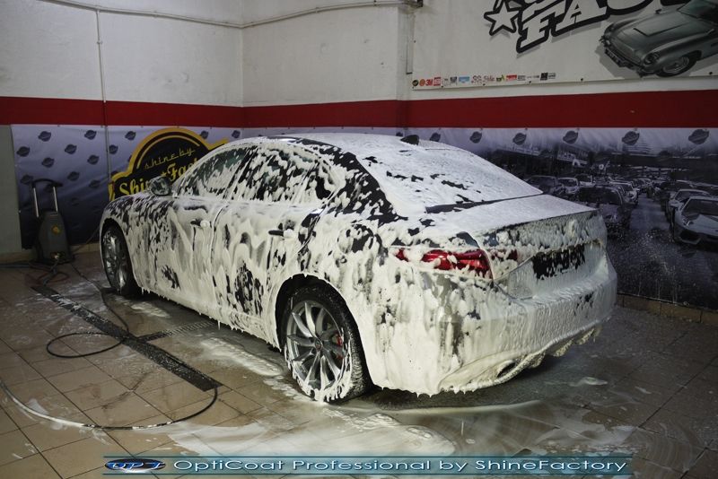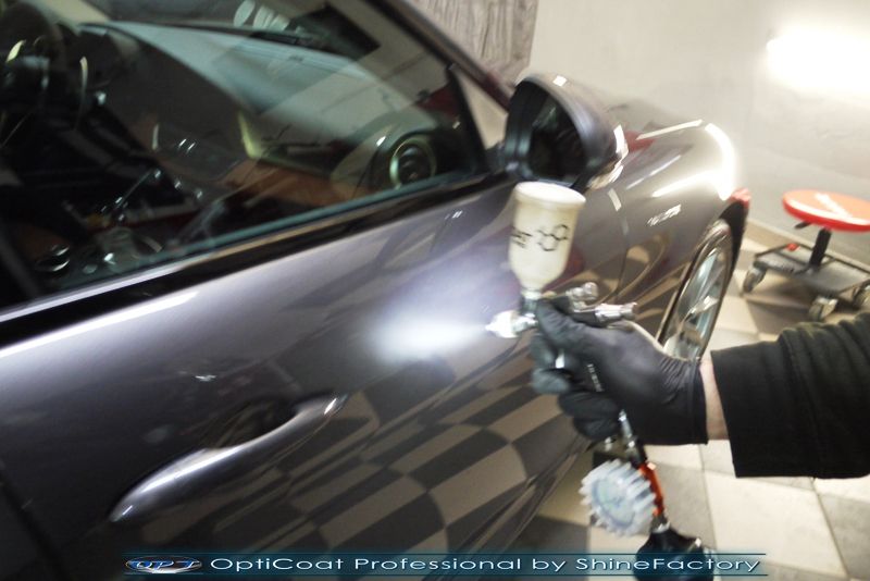 Kolejny raz mieliśmy przyjemność zająć się piękną Włoszką, czyli Alfo Romeo Giulia w wersji Veloce. Auto zostało nam oddane zaraz po wyjeździe z salonu w celu jak najgrubszego i jak najmocniejszego możliwego zabezpieczenia pakietem powłok ceramicznych. Auto przeszło nasz szeroki pakiet NewShine więc prócz zabezpieczenia kompletem ceramiki nadwozia, zdjęliśmy koła w celu dokładnego detailingu nadkoli, wnętrza felg oraz zacisków hamulcowych. Całe wnętrze zostało zaimpregnowane kosmetykami najwyższej ligi. Prace nad nadwoziem rozpoczęliśmy od dokładnego oczyszczenia i odtłuszczenia, następnie lakier przeszedł delikatną korektę w celu uzyskania perfekcyjnego efektu finalnego. Po tych czynnościach przeszliśmy do aplikacji powłok na wszelkie elementy jak lakier, szyby (bezapelacyjnie najlepszą powłoką Gtechniq G1), lampy, felgi (pancerny CQ DLUX), detale itp itd. Najważniejsze, na sam lakier zaaplikowaliśmy maksymalnie grubą natryskową warstwę kompozytu ceramicznego (100% powłoki na aucie) opartego na SiC- OptiCoat Professional połączoną z powłoką GlossCoat, która zapewni ochronę, zminimalizowane brudzenie oraz ułatwione do maksimum mycie, co na pewno przyda się w trudniejszych zimowych warunkach. Nie pominęliśmy zajęcia się komorą silnika aby na długi czas prezentowała się świeżo i schludnie. Finalnie całe auto zostało wygrzane lampami IR w odpowiedniej temperaturze w celu utwardzenia. Zapraszamy do szerokiej fotorelacji!