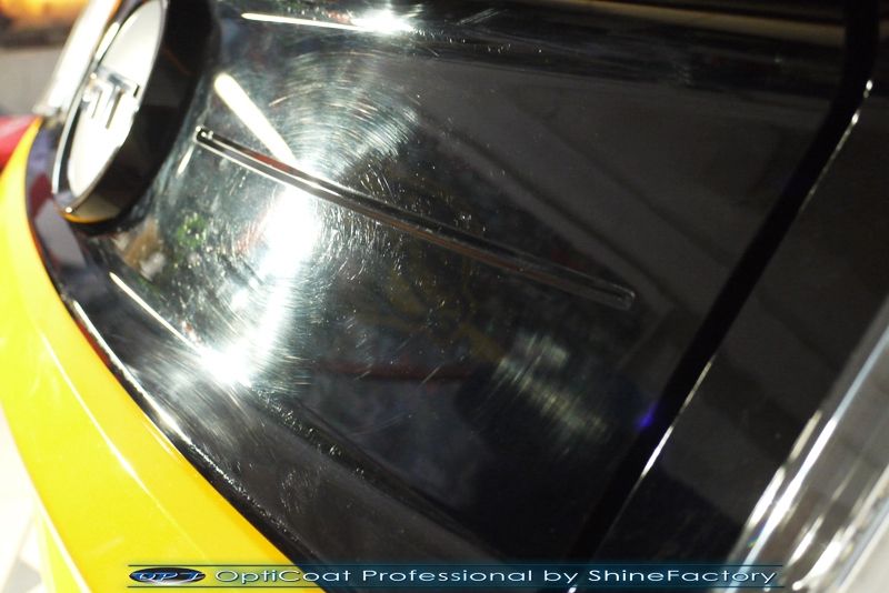 Witamy! Dziś zapraszamy Państwa do fotorelacji z prac nad wyjątkowym autem, pierwszym w Polsce Fordem Mustangiem 2018, oczywiście w wersji GT w niesamowicie ciekawym kolorze. Auto zostało nam oddane przez naszego stałego klienta zaraz wprost po wyjeździe z salonu w celu jak najgrubszego i jak najmocniejszego możliwego zabezpieczenia pakietem powłok ceramicznych. Mustang przeszedł nasz szeroki pakiet NewShine. Całe wnętrze zostało zaimpregnowane kosmetykami najwyższej ligi z naciskiem na zabezpieczenie skór, el. plastikowych oraz materiałowych. Prace nad nadwoziem rozpoczęliśmy od dokładnego oczyszczenia i odtłuszczenia, następnie lakier przeszedł delikatną korektę w celu uzyskania perfekcyjnego efektu finalnego. Po tych czynnościach przeszliśmy do aplikacji powłok na wszelkie elementy jak lakier, szyby (bezapelacyjnie najlepszą powłoką Gtechniq G1), lampy, felgi (pancerny CQ DLUX), detale itp itd. Najważniejsze, na sam lakier zaaplikowaliśmy maksymalnie grubą natryskową warstwę kompozytu ceramicznego (100% powłoki na aucie) opartego na SiC- OptiCoat Professional połączoną z powłoką GlossCoat, która zapewni ochronę, zminimalizowane brudzenie oraz ułatwione do maksimum mycie, co na pewno przyda się w trudnych zimowych warunkach. Nie pominęliśmy zajęcia się komorą 5 litrowego silnika V8, aby na długi czas prezentowała się świeżo i schludnie. Dodatkowo na kilka wrażliwych elementów (lampy przednie, ranty drzwi, wnęki drzwi) położyliśmy mocne bezbarwne folie które ochronią przed mocnymi rysami oraz piaskowaniem. Zapraszamy do szerokiej fotorelacji!