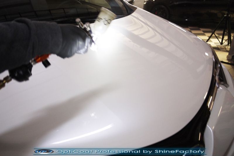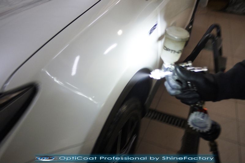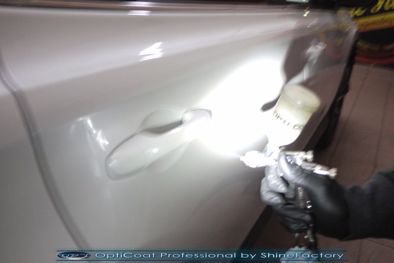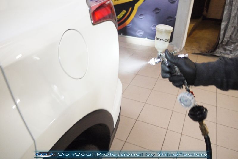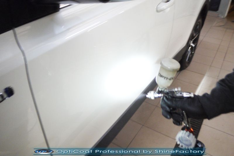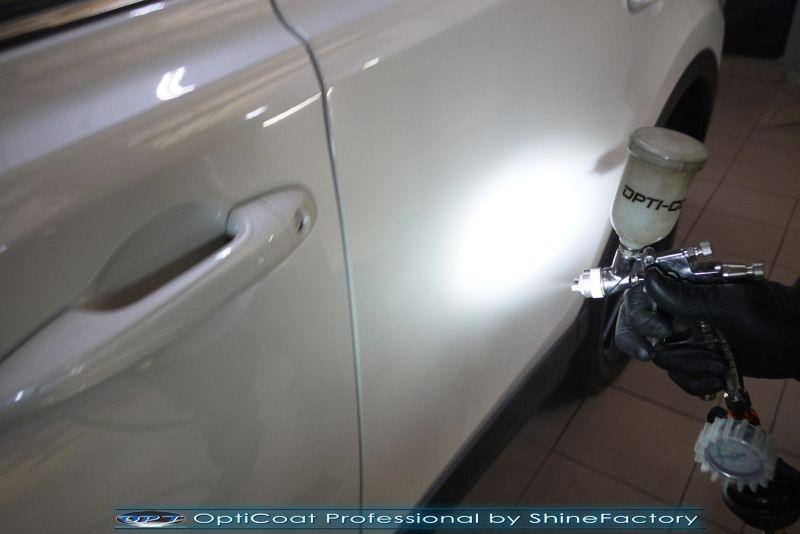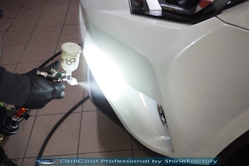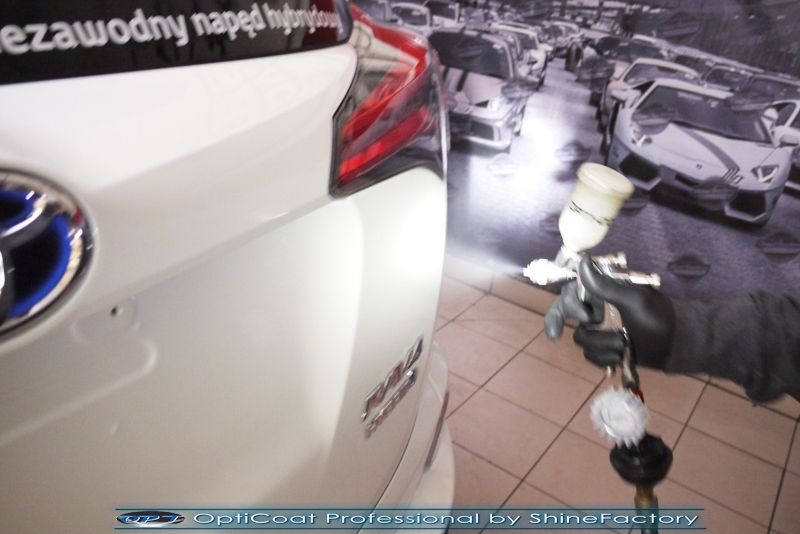 Tym razem mieliśmy przyjemność zabezpieczyć nowe auto naszej stałej klientki- białą Toyote RAV4. Auto zostało nam oddane zaraz po opuszczeniu salonu w celu jak najgrubszego i jak najmocniejszego możliwego zabezpieczenia powłoką ceramiczną aby na długi czas pozostało lśniące i śnieżono białe. Oczywiście prace rozpoczęliśmy od dokładnego oczyszczenia nadwozia, odtłuszczenia oraz inspekcji. Po lekkich poprawkach na lakier, w celu najmocniejszej możliwej ochrony, trafiła zaaplikowana w innowacyjny natryskowy sposób powłoka ceramiczna OptiCoat Professional 9H+ oparta na SiC z dodatkową warstwą powłoki GlossCoat zapewniając maksymalną grubość i efektywność działania na wiele lat. Następnym naszym zadaniem była aplikacja powłok ochronnych na resztę elementów auta jak szyby, koła, elementy nielakierowane , chromowane, plastiki itp itd oraz wygrzaniu w odpowiedniej temperaturze lampami IR. Po pracy auto zyskało idealny wygląd, bardzo mocną ochronę a także zminimalizowane brudzenie. Zapraszamy do pełnej relacji!