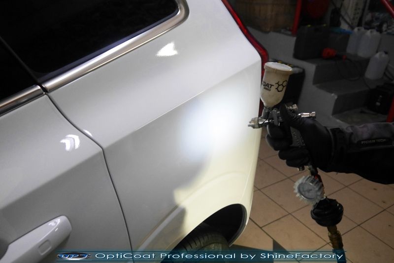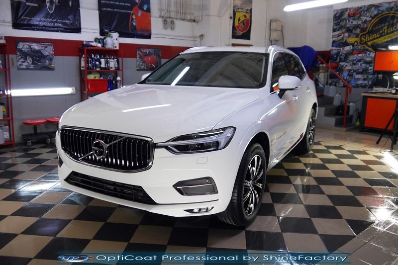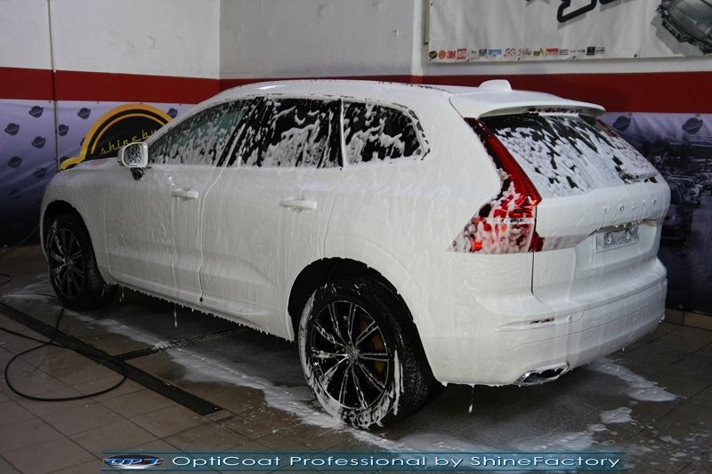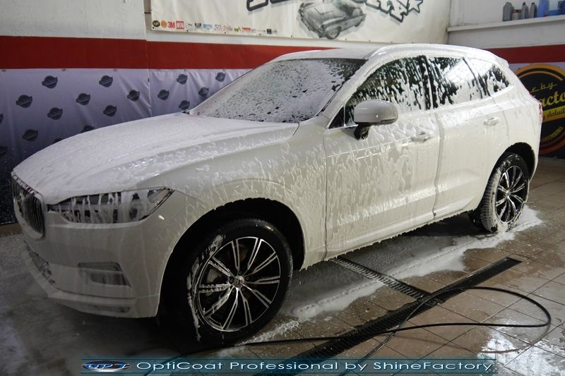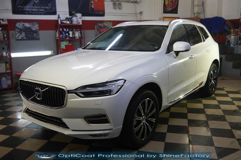 Tym razem zapraszamy Państwa do fotorelacji z prac nad najnowszą wersją Volvo XC60 w białym niemetalicznym lakierze. Auto zostało nam oddane zaraz wprost po wyjeździe z salonu w celu jak najgrubszego i jak najmocniejszego możliwego zabezpieczenia pakietem powłok ceramicznych. Volvo przeszło nasz szeroki pakiet NewShine więc prócz zabezpieczenia kompletem ceramiki nadwozia, zdjęliśmy z auta koła w celu dokładnego detailingu nadkoli, wnętrza felg oraz zacisków hamulcowych. Całe wnętrze zostało zaimpregnowane kosmetykami najwyższej ligi z naciskiem na zabezpieczenie skór, el. plastikowych oraz materiałowych. Prace nad nadwoziem rozpoczęliśmy od dokładnego oczyszczenia i odtłuszczenia, następnie lakier przeszedł delikatną korektę w celu uzyskania perfekcyjnego efektu finalnego. Po tych czynnościach przeszliśmy do aplikacji powłok na wszelkie elementy jak lakier, szyby (bezapelacyjnie najlepszą powłoką Gtechniq G1), lampy, felgi (pancerny CQ DLUX), detale itp itd. Najważniejsze, na sam lakier zaaplikowaliśmy maksymalnie grubą natryskową warstwę kompozytu ceramicznego (100% powłoki na aucie) opartego na SiC- OptiCoat Professional połączoną z powłoką GlossCoat, która zapewni ochronę, zminimalizowane brudzenie oraz ułatwione do maksimum mycie. Nie pominęliśmy zajęcia się komorą silnika aby na długi czas prezentowała się świeżo i schludnie. Finalnie całe auto zostało wygrzane lampami IR w odpowiedniej temperaturze w celu utwardzenia. Dodatkowo na ranty drzwi oraz próg bagażnika położyliśmy bezbarwne folie które ochronią je przed mocnymi uszkodzeniami. Zapraszamy do szerokiej fotorelacji!