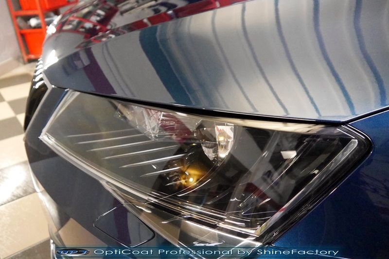 Oczywiście prace rozpoczęliśmy od zdjęcia z auta kół i zabezpieczenia nadkoli, felg oraz zacisków hamulcowych powłokami ceramicznymi. Kolejno przeszliśmy do dokładnego oczyszczenia całego nadwozia z naleciałości oraz delikatnej korekty aby usunąć po fabryczne/transportowe niedoskonałości. Następnie przystąpiliśmy do aplikacji bezbarwnych folii ochronnych na najbardziej narażone na mocne uszkodzenia el. auta, oczywiście zdecydowaliśmy się jak zawsze wybrać produkt bezkonkurencyjny i nowoczesny na rynku, czyli folie Premium Shield Self Healing. Po aplikacji folii przeszliśmy do zabezpieczania wszelkich el. auta powłokami, zaaplikowaliśmy w natryskowy sposób grubą warstwę powłoki 9H+ Optimum OptiCoat Professional potwierdzoną testami TUV, pokrywając ją dla maksymalnego efektu wizualnego powłoką GlossCoat, która na końcu została utwardzona w odpowiedniej temp. lampami IR. Oczywiście zajęliśmy się, także zabezpieczeniem pakietem powłok wszelkich innych elementów jak szyby (Gtechniq G1), felgi (DLUX), lampy czy elementy nielakierowane . Nie pominęliśmy zajęcia się wnętrzem aby zabezpieczyć je w każdym detalu różnymi kosmetykami skupiając się na impregnacji delikatnych skór. Po kilkudziesięciu godzinach pracy Skoda nabrała perfekcyjnego wyglądu, połysku oraz co najważniejsze najmocniejszej praktycznie pancernej ochrony na lata. Zapraszamy do szerokiej fotorelacji!
