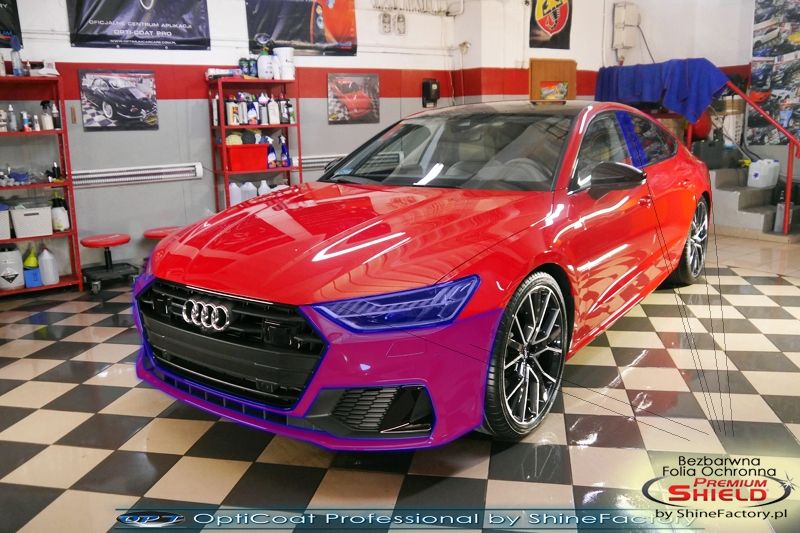 Kolejne nowe auto które zostało nam oddane w celu pełnego pokrycia pakietem powłok ceramicznych oraz ochrony przodu bezbarwnymi foliami poliuretanowymi przed odpryskami. Tym razem mieliśmy przyjemność zająć się pięknym nowym Audi A7 praktycznie zaraz po wyjeździe z salonu. Auto zostało maksymalnie zabezpieczony przed wszystkimi możliwymi uszkodzeniami. Wykorzystane do tego zostały najlepsze na rynku bezbarwne folie ochronne Premium Shield oraz natryskowa ceramika OptiCoat PRO.
