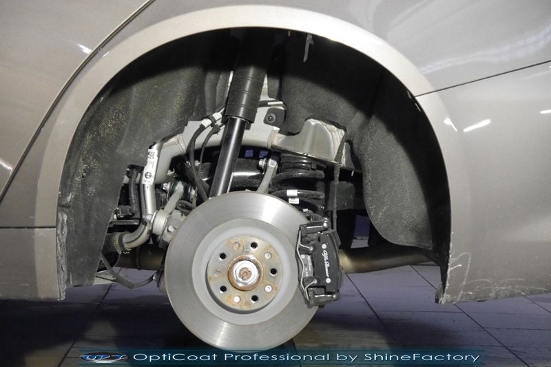 Oczywiście prace rozpoczęliśmy od zdjęcia z auta kół i zabezpieczenia nadkoli, felg oraz zacisków hamulcowych powłokami ceramicznymi. Kolejno przeszliśmy do dokładnego oczyszczenia całego nadwozia z naleciałości oraz delikatnej korekty aby usunąć po fabryczne/transportowe niedoskonałości. Następnie przystąpiliśmy do aplikacji bezbarwnych folii ochronnych na najbardziej narażone na mocne uszkodzenia el. auta, oczywiście zdecydowaliśmy się jak zawsze wybrać produkt bezkonkurencyjny i nowoczesny na rynku, czyli folie Premium Shield Self Healing. Po aplikacji folii przeszliśmy do zabezpieczania wszelkich el. auta powłokami, zaaplikowaliśmy w natryskowy sposób grubą warstwę powłoki 9H+ Optimum OptiCoat Professional potwierdzoną testami TUV, pokrywając ją dla maksymalnego efektu wizualnego powłoką GlossCoat, która na końcu została utwardzona w odpowiedniej temp. lampami IR. Oczywiście zajęliśmy się, także zabezpieczeniem pakietem powłok wszelkich innych elementów jak szyby (Gtechniq G1), felgi (DLUX), lampy czy elementy nielakierowane . Nie pominęliśmy zajęcia się wnętrzem aby zabezpieczyć je w każdym detalu różnymi kosmetykami skupiając się na impregnacji delikatnych skór. Po kilkudziesięciu godzinach pracy Alfa nabrała perfekcyjnego wyglądu, połysku oraz co najważniejsze najmocniejszej praktycznie pancernej ochrony na lata. Zapraszamy do szerokiej fotorelacji!
