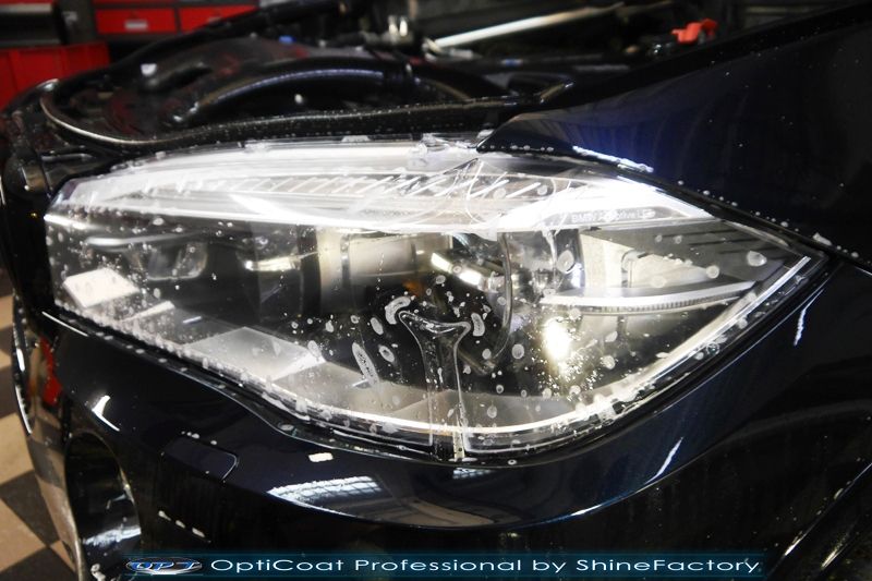Oczywiście prace rozpoczęliśmy od dokładnego oczyszczenia całego nadwozia z naleciałości oraz delikatnej korekty aby usunąć po fabryczne/transportowe niedoskonałości oraz wżery po owadach które już powstały na przodzie auta. Następnie przystąpiliśmy do aplikacji bezbarwnych folii ochronnych na najbardziej narażone na mocne uszkodzenia el. auta, oczywiście zdecydowaliśmy się jak zawsze wybrać produkt bezkonkurencyjny i nowoczesny na rynku, czyli folie Premium Shield Self Healing. Po aplikacji folii przeszliśmy do zabezpieczania wszelkich el. auta powłokami, zaaplikowaliśmy w natryskowy sposób grubą warstwę powłoki 9H+ Optimum OptiCoat Professional potwierdzoną testami TUV, pokrywając ją dla maksymalnego efektu wizualnego powłoką GlossCoat, która na końcu została utwardzona w odpowiedniej temp. lampami IR. Oczywiście zajęliśmy się, także zabezpieczeniem pakietem powłok wszelkich innych elementów jak szyby (Gtechniq G1), felgi (DLUX), lampy czy elementy nielakierowane . Nie pominęliśmy zajęcia się wnętrzem aby zabezpieczyć je w każdym detalu różnymi kosmetykami skupiając się na impregnacji delikatnych skór. Po kilkudziesięciu godzinach pracy BMW nabrało perfekcyjnego wyglądu, połysku oraz co najważniejsze najmocniejszej praktycznie pancernej ochrony na lata. Zapraszamy do szerokiej fotorelacji!