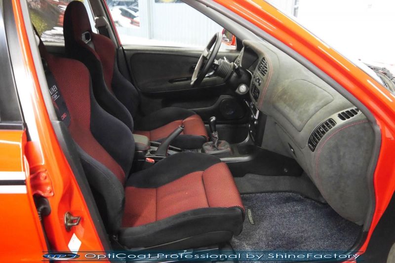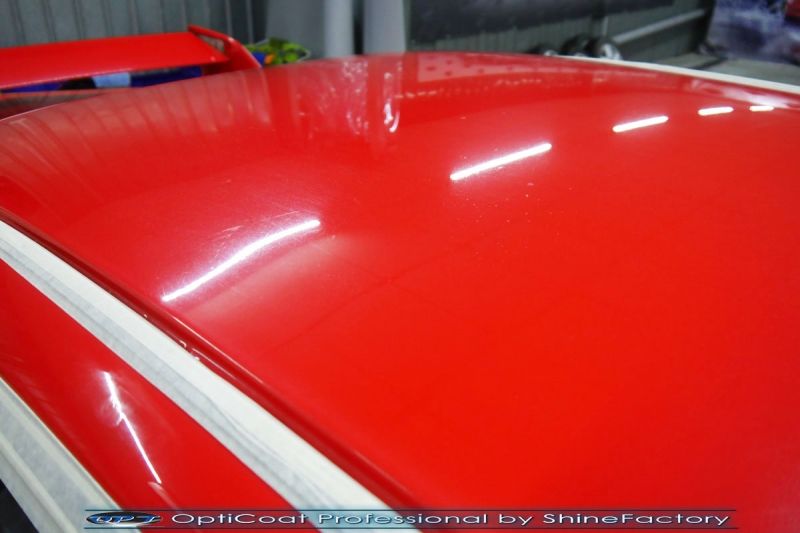 Zaczęliśmy od detailingu felg oraz nadkoli a także dogłębnego oczyszczenia lakieru. Następnie przystąpiliśmy do najbardziej czasochłonnego i najważniejszego etapu prac czyli korekty zniszczonego lakieru, usunęliśmy jak mogliśmy (ze względu na minimalne wartości lakieru) wszelkie niedoskonałości i zmatowienie, po kilku dniach prac nabrał idealnego wyglądu oraz był gotowy do zabezpieczanie powłoką ceramiczną. Finalnie zdecydowaliśmy się zabezpieczyć każdy element auta najlepszymi powłokami ceramicznymi/kwarcowymi z rynku, sam lakier testowaną w laboratoryjny sposób przez TUV powłoką ceramiczną OptiCoat Professional/GlossCoat w innowacyjny natryskowy sposób co zapewnia maksymalny połysk i grubą ochronę lakieru na bardzo długi czas. Oczywiście Lancer przeszedł, także bardzo dokładnym detailing wnętrza, wszelkie el. plastikowe zostały oczyszczony i zabezpieczone, materiały wyprane ekstrakcyjnie, skóry oczyszczone i zaimpregnowane. Nie zapomnieliśmy, także o zajęciu się komorą silnika która ponownie cieszy oko. EVO dzięki detailingowi oraz finalnemu pokryciu ceramiką, przez wiele przyszłych lat będzie cieszyło oko idealną prezentacją i maksymalnym blaskiem. Zapraszamy do szerokiej fotorelacji i zdjęć efektu końcowego!