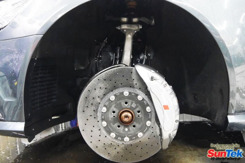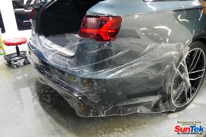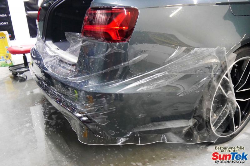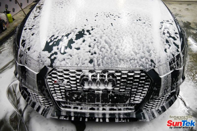Zabezpieczenie frontów nowych aut bezbarwnymi foliami ochronnymi staje się powoli standardem, coraz częściej także zabezpieczane w ten sposób są auta w całości co daje do tego czasu nieosiągalne perfekcyjne zabezpieczenie i efekt wizualny. Tym razem mieliśmy przyjemność zająć się Audi RS6. Auto zostało nam powierzone z symbolicznym przebiegiem w celu najlepszego na świecie zabezpieczenia całego auta. Decyzja padła oczywiście na połączanie znakomitych bezbarwnych folii ochronnych SunTek Ultra PPF z 10 letnią gwarancją oraz pakietu powłok ceramicznych. Standardowo prace zaczęliśmy od bardzo dokładnego oczyszczenia nadwozia z wszelkich naleciałości, detailingu felg oraz nadkoli. Następnie po inspekcji usunęliśmy wszelkie niedoskonałości lakieru. Po przygotowaniu przeszliśmy do zabezpieczenia auta, najpierw aplikując bezbarwne folie ochronne. Folie zazwyczaj aplikuje się na najbardziej narażone el. auta jak przód, tym razem zdecydowaliśmy się dosłownie całe auto pokryć najlepszymi na świecie regeneracyjnymi foliami SunTek Ultra aby uzyskać 100% ochronę lakieru, który będzie całkowicie izolowany od środowiska zewnętrznego i nic nie będzie wstanie go uszkodzić. Po aplikacji folii przeszliśmy do zabezpieczania wszelkich el. auta powłokami, zaaplikowaliśmy pakiet powłok na całe auto, folie, szyby (Gtechniq G1), felgi (DLUX), elementy nielakierowane. Nie pominęliśmy detailingu wnętrza aby zaimpregnować je w każdym detalu różnymi kosmetykami najwyższej klasy. Po kilkudziesięciu godzinach pracy Audi nabrało perfekcyjnego wyglądu, połysku oraz co najważniejsze najmocniejszej praktycznie pancernej ochrony na lata. Zapraszamy do szerokiej fotorelacji!