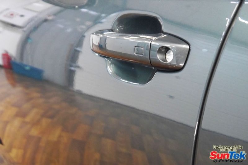 Oklejone zostały wszystkie elementy auta w celu ochrony przed wszelkimi uszkodzeniami jak np. odpryski od kamieni, piaskowanie od żwiru drogowego, mocniejszymi rysami czy nawet drobnymi obcierkami parkingowymi. Dokładnie oklejone zostały: