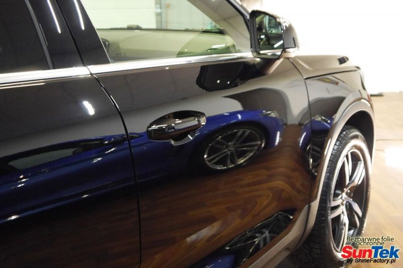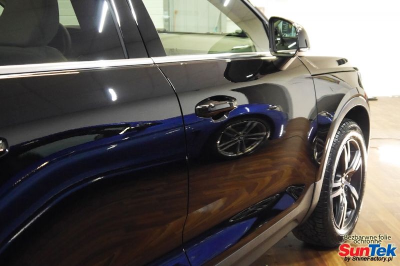 Oklejone zostały wszystkie elementy auta w celu ochrony przed wszelkimi uszkodzeniami jak np. odpryski od kamieni, piaskowanie od żwiru drogowego, mocniejszymi rysami czy nawet drobnymi obcierkami parkingowymi. Dokładnie oklejone zostały: