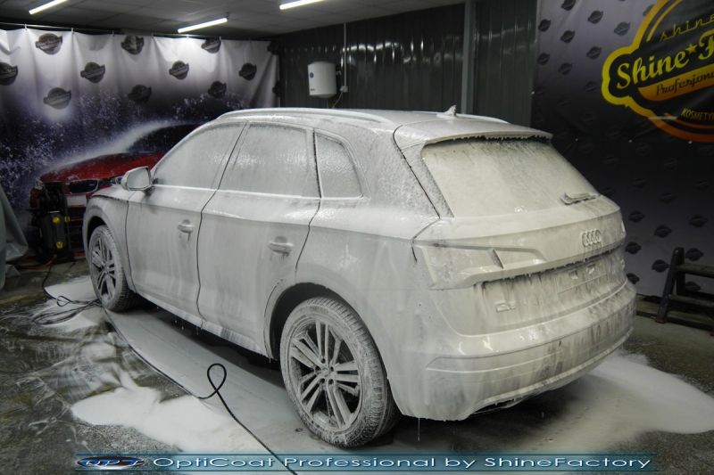 Zapraszamy Państwa do fotorelacji z prac nad Audi Q5. Auto zostało nam powierzone po niedużym przebiegu kiedy już właściciel zauważył jak delikatny lakier jest na aucie, w celu jak najgrubszego i jak najmocniejszego możliwego zabezpieczenia pakietem powłok ceramicznych. Audi przeszło nasz szeroki pakiet zabezpieczenia kompletem ceramiki nadwozia oraz wnętrza. Prace rozpoczęliśmy od dokładnego oczyszczenia i odtłuszczenia, następnie lakier przeszedł dość mocne odświeżenie w celu usunięcia już powstałych mikrorys, zmatowień oraz wżerów. Całe wnętrze zostało zaimpregnowane kosmetykami najwyższej ligi z naciskiem na zabezpieczenie jasnych skór, el. plastikowych oraz materiałowych. Po tych czynnościach przeszliśmy do aplikacji powłok na wszelkie elementy jak lakier, szyby (bezapelacyjnie najlepszą powłoką Gtechniq G1), lampy, felgi (pancerny CQ DLUX) oraz inne detale auta. Najważniejsze, na sam lakier zaaplikowaliśmy maksymalnie grubą natryskową warstwę kompozytu ceramicznego (100% powłoki na aucie) opartego na SiC- OptiCoat Professional połączoną z powłoką GlossCoat, która zapewni ochronę, zminimalizowane brudzenie oraz ułatwione do maksimum mycie. Zapraszamy do szerokiej fotorelacji!