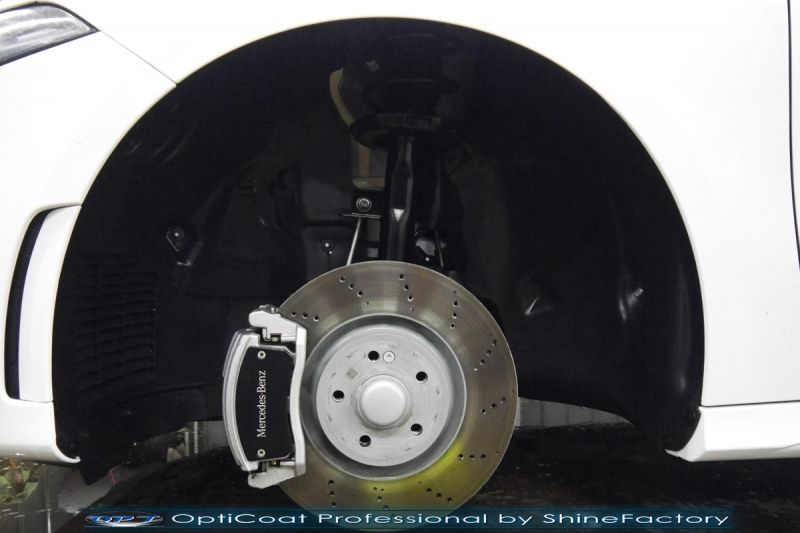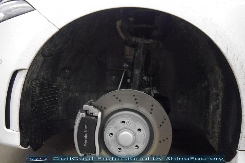 Oczywiście prace rozpoczęliśmy od dokładnego oczyszczenia całego nadwozia z naleciałości, zdjęliśmy z auta koła. Przeprowadziliśmy delikatną korektę aby usunąć po fabryczne/transportowe niedoskonałości. Następnie przystąpiliśmy do aplikacji bezbarwnych folii ochronnych na najbardziej narażone na mocne uszkodzenia el. auta, oczywiście zdecydowaliśmy się jak zawsze wybrać produkt bezkonkurencyjny i nowoczesny na rynku, czyli folie regeneracyjne SunTek Ultra PPF. Po aplikacji folii przeszliśmy do zabezpieczania wszelkich el. auta powłokami, zaaplikowaliśmy w natryskowy sposób grubą warstwę powłoki 9H+ Optimum OptiCoat Professional potwierdzoną testami TUV, pokrywając ją dla maksymalnego efektu wizualnego powłoką GlossCoat, która na końcu została utwardzona w odpowiedniej temp. lampami IR. Oczywiście zajęliśmy się, także zabezpieczeniem pakietem powłok wszelkich innych elementów jak szyby (Gtechniq G1), felgi (DLUX), lampy czy elementy nielakierowane . Nie pominęliśmy zajęcia się wnętrzem aby zabezpieczyć je w każdym detalu różnymi kosmetykami skupiając się na impregnacji delikatnych skór. Po kilkudziesięciu godzinach pracy Mercedes nabrał perfekcyjnego wyglądu, połysku oraz co najważniejsze najmocniejszej praktycznie pancernej ochrony na lata. Zapraszamy do szerokiej fotorelacji!