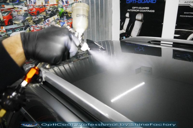 Zapraszamy Państwa do fotorelacji z prac nad nową Mazda 6 w wyjątkowo pięknym ale bardzo delikatnym lakierze. Auto zostało nam oddane wprost po wyjeździe z salonu w celu jak najgrubszego i jak najmocniejszego możliwego zabezpieczenia pakietem powłok ceramicznych. Mazda przeszła nasz szeroki pakiet prac dla nowego auta więc prócz zabezpieczenia kompletem ceramiki nadwozia, zdjęliśmy z auta koła w celu dokładnego detailingu nadkoli, wnętrza felg oraz zacisków hamulcowych. Całe wnętrze zostało zaimpregnowane kosmetykami najwyższej ligi z naciskiem na zabezpieczenie jasnych skór, el. plastikowych oraz materiałowych. Prace nad nadwoziem rozpoczęliśmy od dokładnego oczyszczenia i odtłuszczenia, następnie lakier przeszedł delikatną korektę w celu uzyskania perfekcyjnego efektu finalnego. Po tych czynnościach przeszliśmy do aplikacji powłok na wszelkie elementy jak lakier, szyby (bezapelacyjnie najlepszą powłoką Gtechniq G1), lampy, felgi (pancerny CQ DLUX), detale itp itd. Najważniejsze, na sam lakier zaaplikowaliśmy maksymalnie grubą natryskową warstwę kompozytu ceramicznego (100% powłoki na aucie) opartego na SiC- OptiCoat Professional połączoną z powłoką GlossCoat, która zapewni ochronę, zminimalizowane brudzenie oraz ułatwione do maksimum mycie. Nie pominęliśmy zajęcia się komorą silnika aby na długi czas prezentowała się świeżo i schludnie. Finalnie całe auto zostało wygrzane lampami IR w odpowiedniej temperaturze w celu utwardzenia. Zapraszamy do szerokiej fotorelacji!