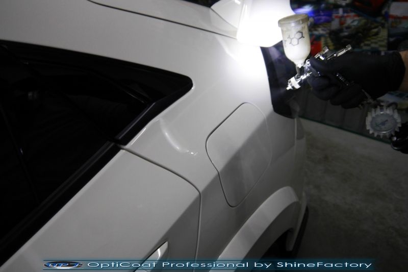 Oczywiście prace rozpoczęliśmy od dokładnego oczyszczenia całego nadwozia z naleciałości. Przeprowadziliśmy delikatną korektę aby usunąć po fabryczne/transportowe niedoskonałości. Następnie przystąpiliśmy do aplikacji bezbarwnych folii ochronnych na najbardziej narażone na mocne uszkodzenia el. auta, oczywiście zdecydowaliśmy się jak zawsze wybrać produkt bezkonkurencyjny i nowoczesny na rynku, czyli folie regeneracyjne SunTek Ultra PPF. Po aplikacji folii przeszliśmy do zabezpieczania wszelkich el. auta powłokami, zaaplikowaliśmy w natryskowy sposób grubą warstwę powłoki 9H+ Optimum OptiCoat Professional potwierdzoną testami TUV, pokrywając ją dla maksymalnego efektu wizualnego powłoką GlossCoat, która na końcu została utwardzona w odpowiedniej temp. lampami IR. Oczywiście zajęliśmy się, także zabezpieczeniem pakietem powłok wszelkich innych elementów jak szyby (Gtechniq G1), felgi (DLUX), lampy czy elementy nielakierowane . Nie pominęliśmy zajęcia się wnętrzem aby zabezpieczyć je w każdym detalu różnymi kosmetykami skupiając się na impregnacji el. z delikatnej alkantary i skóry. Po kilkudziesięciu godzinach pracy TypeR nabrał perfekcyjnego wyglądu, połysku oraz co najważniejsze najmocniejszej praktycznie pancernej ochrony na lata. Zapraszamy do szerokiej fotorelacji!