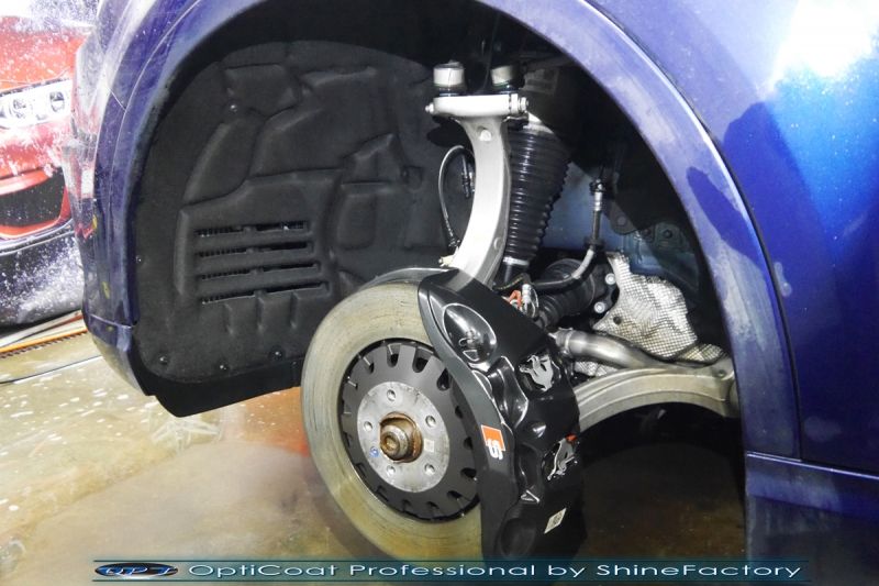 Zapraszamy Państwa do fotorelacji z prac nad Audi SQ7. Auto zostało nam oddane z symbolicznym przebiegiem w celu odświeżenia oraz jak najgrubszego i jak najmocniejszego możliwego zabezpieczenia pakietem powłok ceramicznych. Audi przeszło nasz szeroki pakiet prac dla nowego auta więc prócz zabezpieczenia kompletem ceramiki nadwozia, zdjęliśmy z auta koła w celu dokładnego detailingu nadkoli, wnętrza felg oraz zacisków hamulcowych. Całe wnętrze zostało zaimpregnowane kosmetykami najwyższej ligi z naciskiem na zabezpieczenie skór, el. plastikowych oraz materiałowych. Prace nad nadwoziem rozpoczęliśmy od dokładnego oczyszczenia i odtłuszczenia, następnie lakier przeszedł delikatną korektę w celu uzyskania perfekcyjnego efektu finalnego oraz usunięcia już powstałych niedoskonałości jak wżery po owadach oraz lekkie zmatowienie. Po tych czynnościach przeszliśmy do aplikacji powłok na wszelkie elementy jak lakier, szyby (bezapelacyjnie najlepszą powłoką Gtechniq G1), lampy, felgi (pancerny CQ DLUX), detale itp itd. Najważniejsze, na sam lakier zaaplikowaliśmy maksymalnie grubą natryskową warstwę kompozytu ceramicznego (100% powłoki na aucie) opartego na SiC- OptiCoat Professional połączoną z powłoką GlossCoat, która zapewni ochronę, zminimalizowane brudzenie oraz ułatwione do maksimum mycie. Nie pominęliśmy zajęcia się komorą silnika aby na długi czas prezentowała się świeżo i schludnie. Finalnie całe auto zostało wygrzane lampami IR w odpowiedniej temperaturze w celu utwardzenia. Zapraszamy do szerokiej fotorelacji!