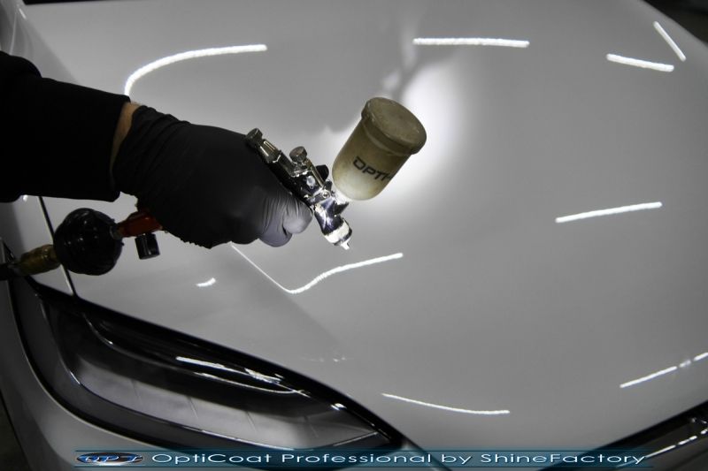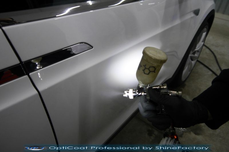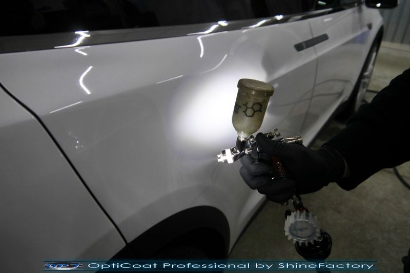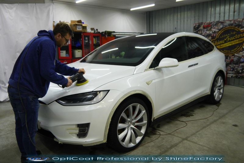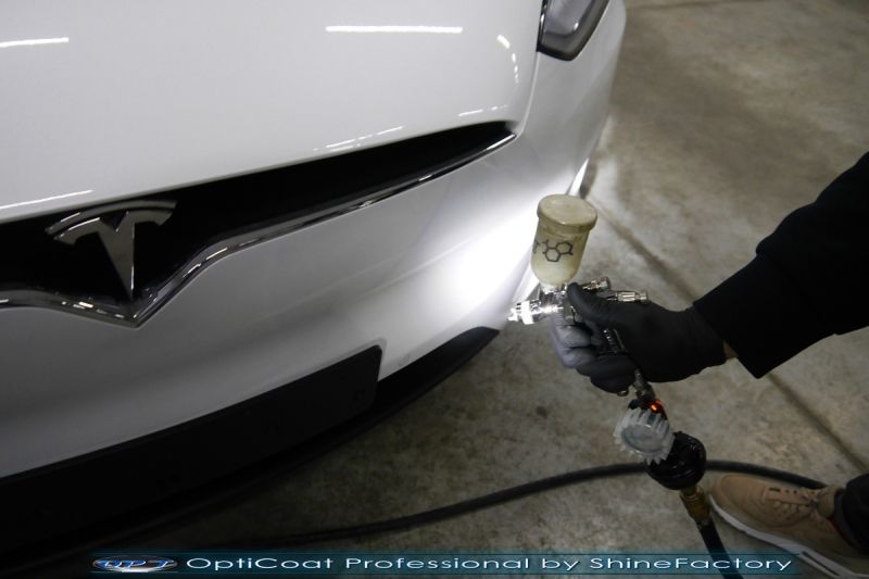 677. Tesla X & natryskowa wielowarstwowa, trzyskładnikowa powłoka ceramiczna OptiCoat PRO+GlossCoat!