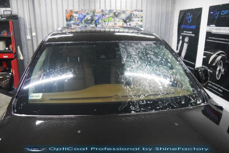Oczywiście prace rozpoczęliśmy od dokładnego oczyszczenia całego nadwozia z naleciałości, zdjęliśmy z auta koła. Przeprowadziliśmy korektę aby usunąć powstałe po niewielkim przebiegu uszkodzenia jak zmatowienia czy wżery od owadów na froncie. Następnie przystąpiliśmy do aplikacji bezbarwnych folii ochronnych na najbardziej narażone na mocne uszkodzenia el. auta, oczywiście zdecydowaliśmy się jak zawsze wybrać produkt bezkonkurencyjny i nowoczesny na rynku, czyli folie regeneracyjne SunTek Ultra PPF. Po aplikacji folii przeszliśmy do zabezpieczania wszelkich el. auta powłokami, zaaplikowaliśmy w natryskowy sposób grubą warstwę powłoki 9H+ Optimum OptiCoat Professional potwierdzoną testami TUV, pokrywając ją dla maksymalnego efektu wizualnego powłoką GlossCoat, która na końcu została utwardzona w odpowiedniej temp. lampami IR. Oczywiście zajęliśmy się, także zabezpieczeniem pakietem powłok wszelkich innych elementów jak szyby (Gtechniq G1), felgi (DLUX), lampy czy elementy nielakierowane . Nie pominęliśmy zajęcia się wnętrzem aby zabezpieczyć je w każdym detalu różnymi kosmetykami skupiając się na impregnacji delikatnych skór. Po kilkudziesięciu godzinach pracy Jeep nabrał perfekcyjnego wyglądu, połysku oraz co najważniejsze najmocniejszej praktycznie pancernej ochrony na lata. Zapraszamy do szerokiej fotorelacji!