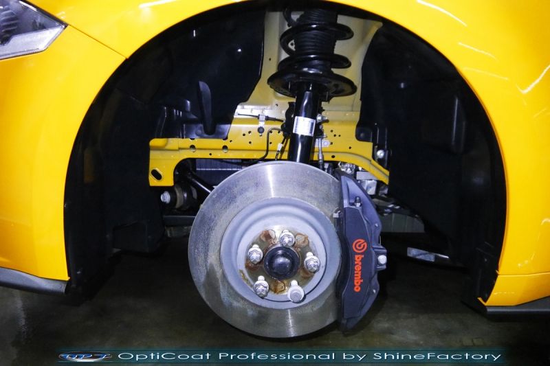 Po tych czynnościach przeszliśmy do aplikacji powłok na wszelkie elementy jak lakier, szyby (bezapelacyjnie najlepszą powłoką Gtechniq G1), lampy, felgi (pancerny CQ DLUX), detale itp itd. Najważniejsze, na sam lakier zaaplikowaliśmy maksymalnie grubą natryskową warstwę kompozytu ceramicznego (100% powłoki na aucie) opartego na SiC- OptiCoat Professional połączoną z powłoką GlossCoat, która zapewni ochronę, zminimalizowane brudzenie oraz ułatwione do maksimum mycie. Nie pominęliśmy zajęcia się komorą silnika aby na długi czas prezentowała się świeżo i schludnie. Finalnie całe auto zostało wygrzane lampami IR w odpowiedniej temperaturze w celu utwardzenia. Zapraszamy do szerokiej fotorelacji!