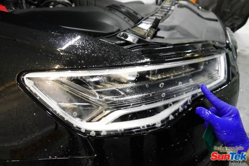 Zapraszamy do zdjęć z prac i efekt końcowego, jak widać folia posiada bardzo duży połysk i przejrzystość dzięki czemu jest praktycznie nie zauważalna.
