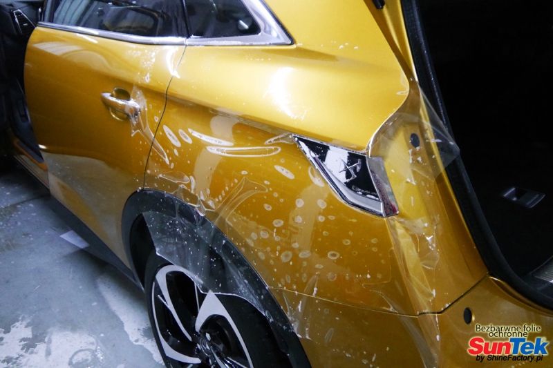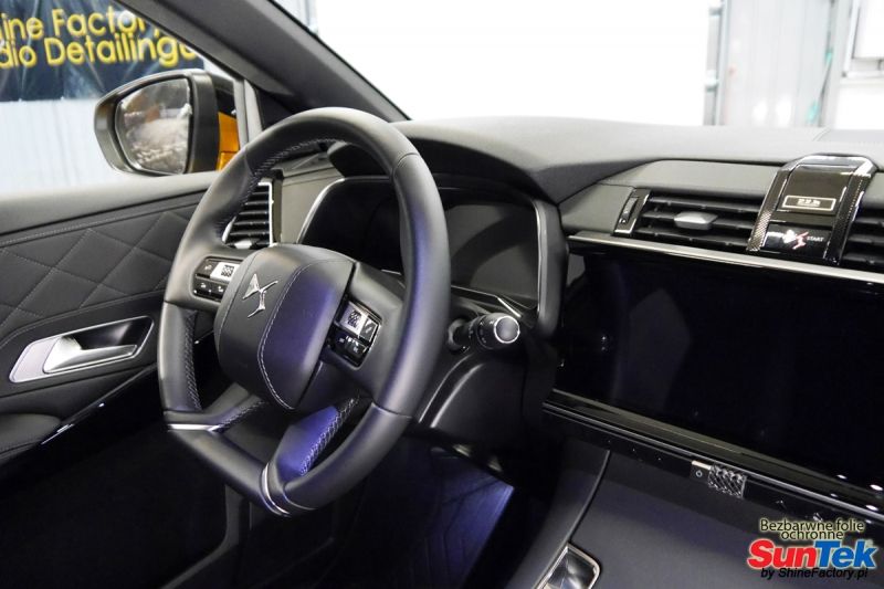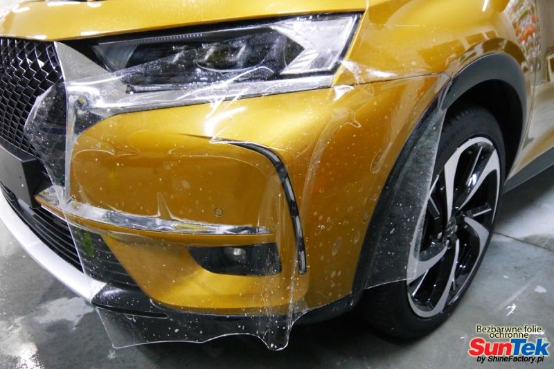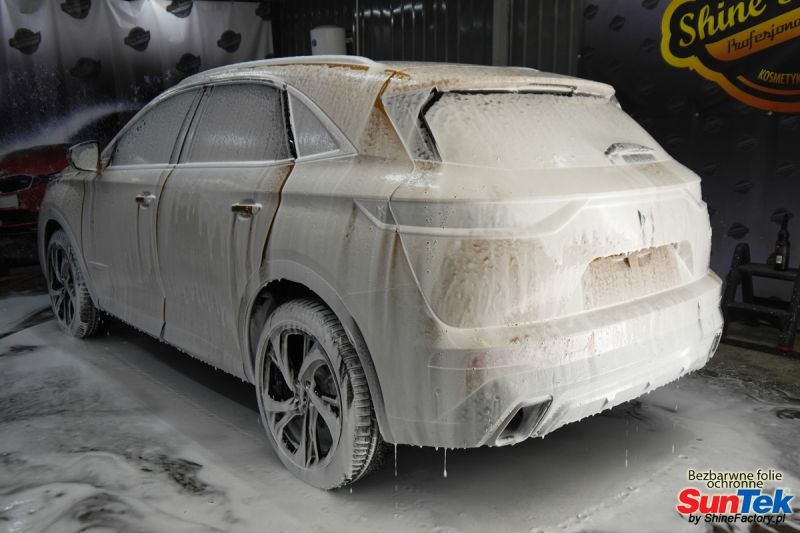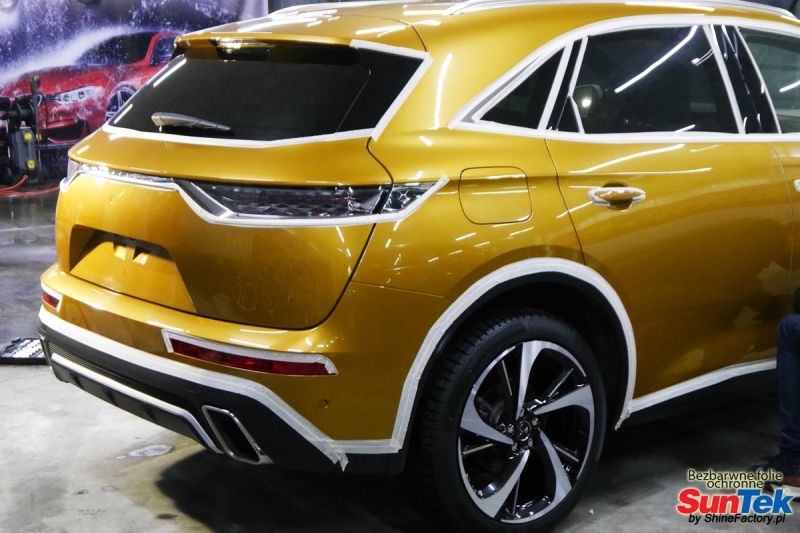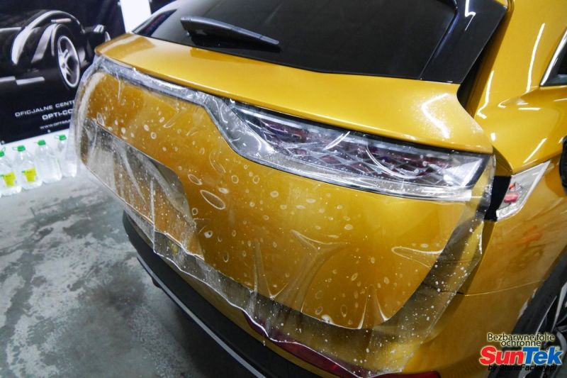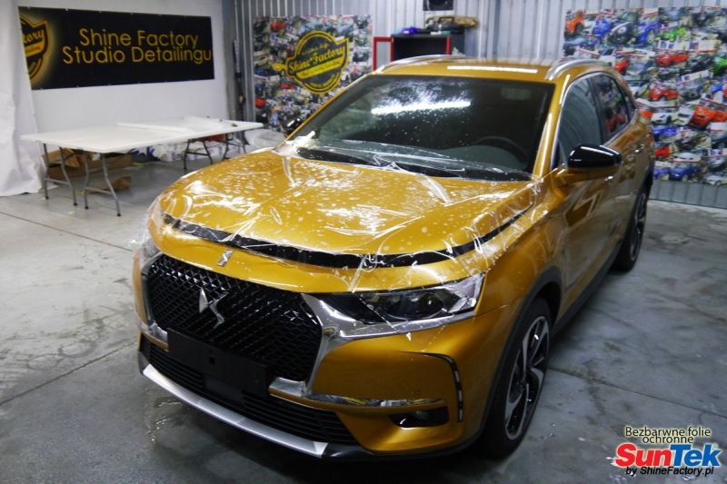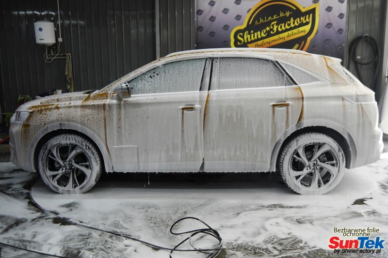 Zabezpieczenie frontów aut bezbarwnymi foliami ochronnymi staje się powoli standardem, coraz częściej także zabezpieczane w ten sposób są auta w całości co daje do tego czasu nieosiągalne perfekcyjne zabezpieczenie i efekt wizualny. Tym razem mieliśmy przyjemność zająć się Citroenem DS7, który posiadał już dość niewielki przebieg. Auto choć z niewielkim przebiegiem posiadało już dużą ilość niedoskonałości, zmatowienie, zarysowania, dlatego właściciel chciał w najlepszy możliwy sposób zabezpieczyć nadwozie na lata aby uszkodzenia te już nie groziły. Decyzja padła oczywiście na połączanie znakomitych bezbarwnych folii ochronnych SunTek Ultra PPF z 10 letnią gwarancją oraz pakietu powłok ceramicznych. Standardowo prace zaczęliśmy od bardzo dokładnego oczyszczenia nadwozia z wszelkich naleciałości. Następnie po inspekcji usunęliśmy wszelkie niedoskonałości lakieru jak mocne zmatowienie i mikrorysy. Po przygotowaniu przeszliśmy do zabezpieczenia auta, najpierw aplikując bezbarwne folie ochronne. Folie zazwyczaj aplikuje się na najbardziej narażone el. auta jak przód, tym razem zdecydowaliśmy się praktycznie całe auto pokryć najlepszymi na świecie regeneracyjnymi foliami SunTek Ultra aby uzyskać 100% ochronę lakieru, który będzie całkowicie izolowany od środowiska zewnętrznego i nic nie będzie wstanie go uszkodzić. Po aplikacji folii przeszliśmy do zabezpieczania wszelkich el. auta powłokami, zaaplikowaliśmy pakiet powłok na całe auto, folie, szyby (Gtechniq G1), felgi (DLUX), elementy nielakierowane. Nie pominęliśmy zajęcia się wnętrzem które zostało dokładnie oczyszczone i zaimpregnowane w każdym detalu różnymi kosmetykami skupiając się na impregnacji delikatnych skór. Po kilkudziesięciu godzinach pracy DS nabrał perfekcyjnego wyglądu, połysku oraz co najważniejsze najmocniejszej praktycznie pancernej ochrony na lata. Zapraszamy do szerokiej fotorelacji!