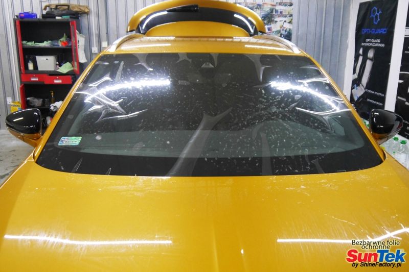 Oklejone zostały wszystkie elementy auta w celu ochrony przed wszelkimi uszkodzeniami jak np. odpryski od kamieni, piaskowanie od żwiru drogowego, mocniejszymi rysami czy nawet drobnymi obcierkami parkingowymi. Dokładnie oklejone zostały: