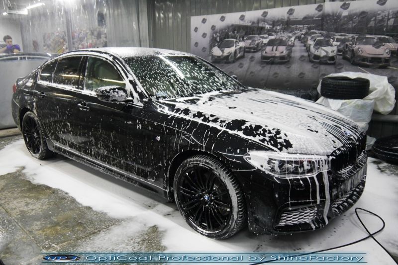 Oczywiście prace rozpoczęliśmy od dokładnego oczyszczenia całego nadwozia z naleciałości. Przeprowadziliśmy delikatną korektę aby usunąć po fabryczne/transportowe niedoskonałości. Następnie przystąpiliśmy do aplikacji bezbarwnych folii ochronnych na najbardziej narażone na mocne uszkodzenia el. auta, oczywiście zdecydowaliśmy się jak zawsze wybrać produkt bezkonkurencyjny i nowoczesny na rynku, czyli folie regeneracyjne SunTek Ultra PPF. Po aplikacji folii przeszliśmy do zabezpieczania wszelkich el. auta powłokami, zaaplikowaliśmy w natryskowy sposób grubą warstwę powłoki 9H+ Optimum OptiCoat Professional potwierdzoną testami TUV, pokrywając ją dla maksymalnego efektu wizualnego powłoką GlossCoat, która na końcu została utwardzona w odpowiedniej temp. lampami IR. Oczywiście zajęliśmy się, także zabezpieczeniem pakietem powłok wszelkich innych elementów jak szyby (Gtechniq G1), felgi (DLUX), lampy czy elementy nielakierowane. Nie pominęliśmy zajęcia się wnętrzem aby zabezpieczyć je w każdym detalu różnymi kosmetykami skupiając się na impregnacji delikatnych skór. Po kilkudziesięciu godzinach pracy BMW nabrało perfekcyjnego wyglądu, połysku oraz co najważniejsze najmocniejszej praktycznie pancernej ochrony na lata. Zapraszamy do fotorelacji!