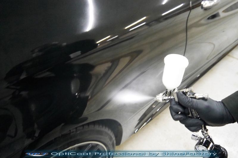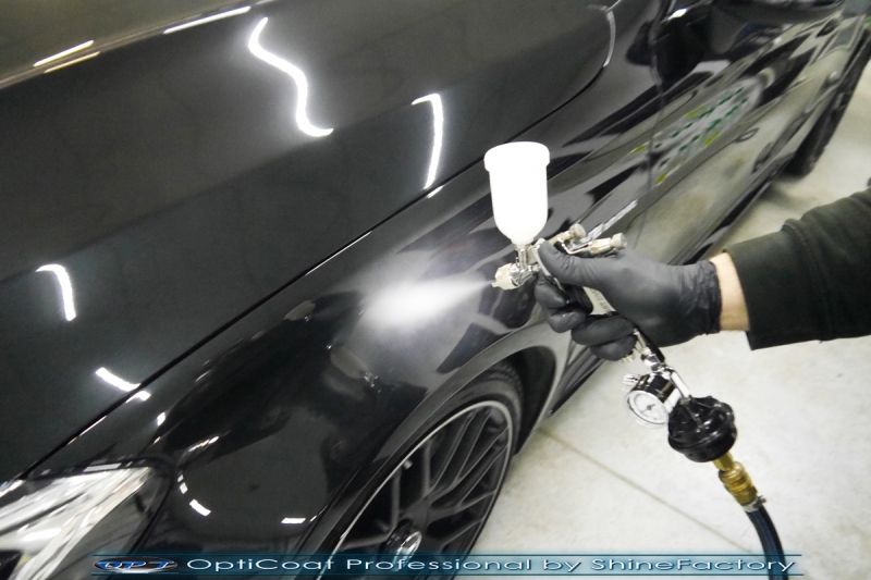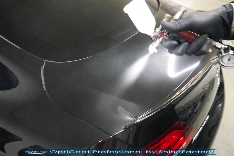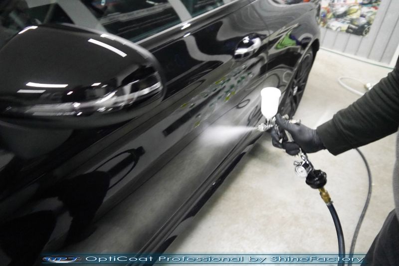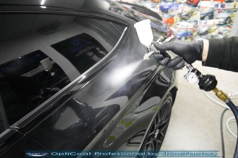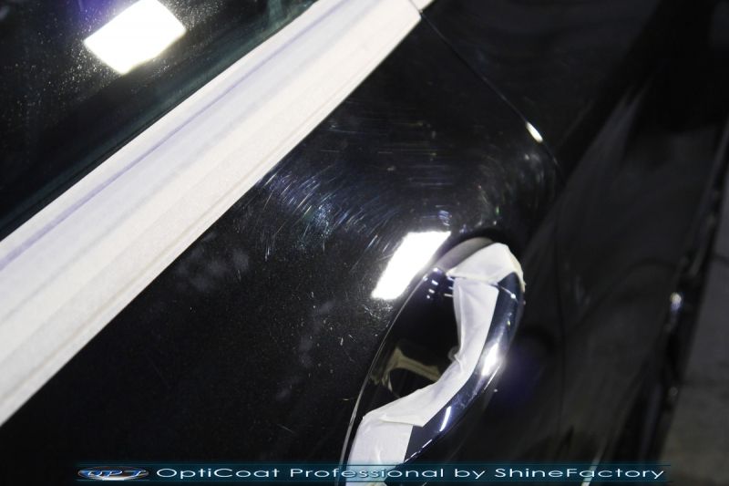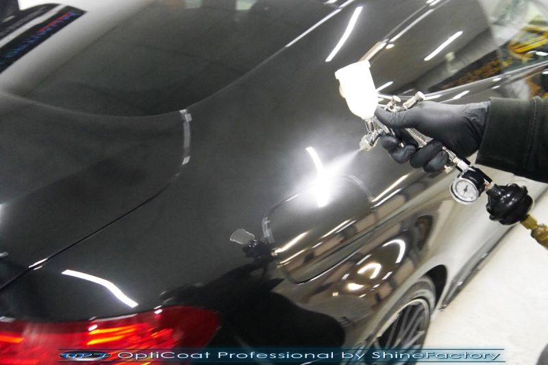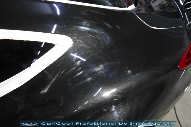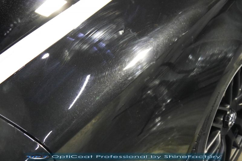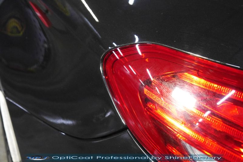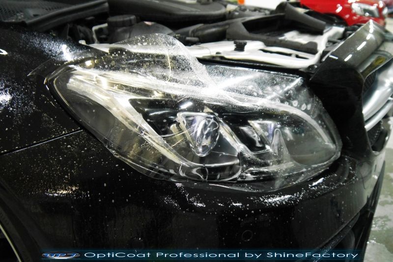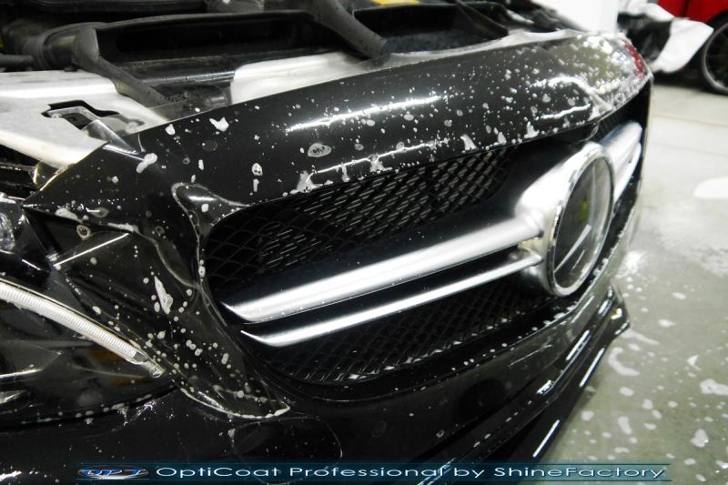 Oczywiście prace rozpoczęliśmy od bardzo dokładnego oczyszczenia całego nadwozia z naleciałości. Auto choć z niewielkim przebiegiem posiadało już dużą ilość niedoskonałości, zmatowienie, zarysowania, obcierki, odpryski na przodzie dlatego przeprowadziliśmy mocną korektę aby usunąć powstałe po niewielkim przebiegu uszkodzenia. Następnie przystąpiliśmy do aplikacji bezbarwnych folii ochronnych na najbardziej narażone na mocne uszkodzenia el. auta, oczywiście zdecydowaliśmy się jak zawsze wybrać produkt bezkonkurencyjny i nowoczesny na rynku, czyli folie regeneracyjne SunTek Ultra PPF. Po aplikacji folii przeszliśmy do zabezpieczania wszelkich el. auta powłokami, zaaplikowaliśmy w natryskowy sposób grubą warstwę powłoki 9H+ Optimum OptiCoat Professional potwierdzoną testami TUV, pokrywając ją dla maksymalnego efektu wizualnego powłoką GlossCoat, która na końcu została utwardzona w odpowiedniej temp. lampami IR. Oczywiście zajęliśmy się, także zabezpieczeniem pakietem powłok wszelkich innych elementów jak szyby (Gtechniq G1), felgi (DLUX), lampy czy elementy nielakierowane . Nie pominęliśmy zajęcia się wnętrzem aby zabezpieczyć je w każdym detalu różnymi kosmetykami skupiając się na impregnacji delikatnych skór. Po kilkudziesięciu godzinach pracy Mercedes nabrał perfekcyjnego wyglądu, połysku oraz co najważniejsze najmocniejszej praktycznie pancernej ochrony na lata. Zapraszamy do szerokiej fotorelacji!