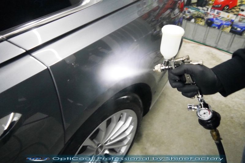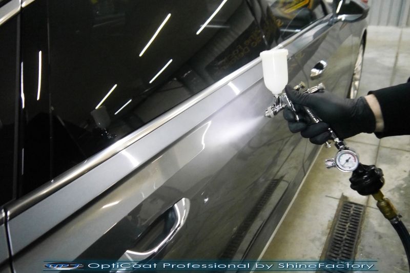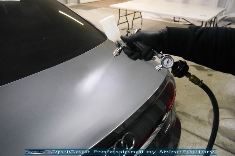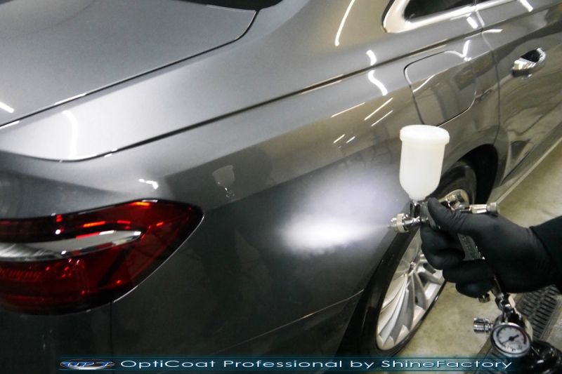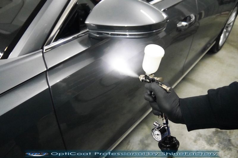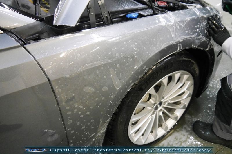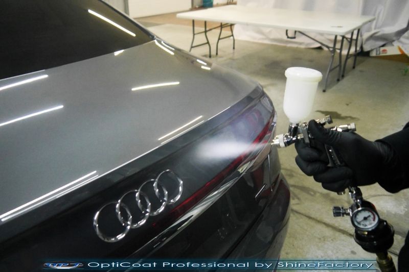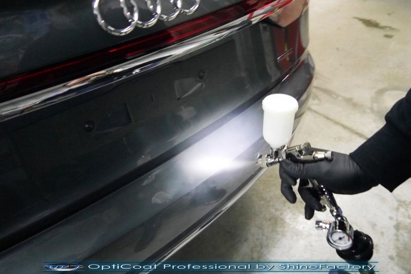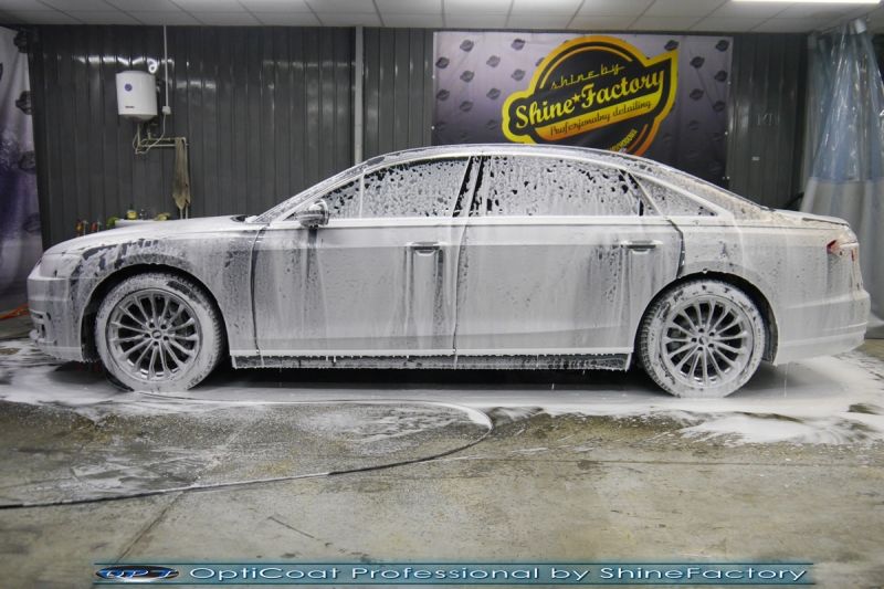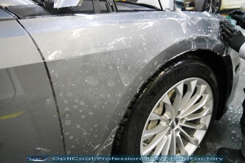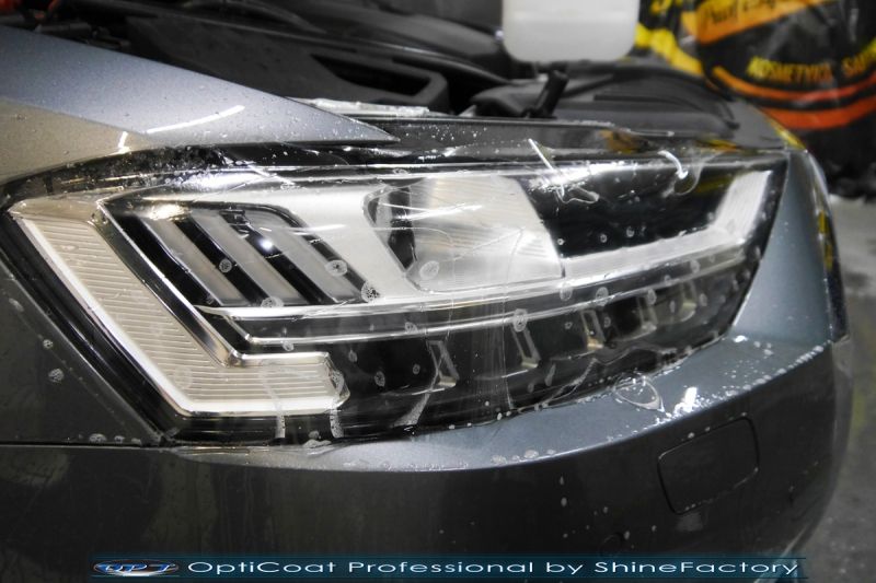Oczywiście prace rozpoczęliśmy od dokładnego oczyszczenia całego nadwozia z naleciałości. Przeprowadziliśmy delikatną korektę aby usunąć po fabryczne/transportowe niedoskonałości. Następnie przystąpiliśmy do aplikacji bezbarwnych folii ochronnych na najbardziej narażone na mocne uszkodzenia el. auta, oczywiście zdecydowaliśmy się jak zawsze wybrać produkt bezkonkurencyjny i nowoczesny na rynku, czyli folie regeneracyjne SunTek Ultra PPF. Po aplikacji folii przeszliśmy do zabezpieczania wszelkich el. auta powłokami, zaaplikowaliśmy w natryskowy sposób grubą warstwę powłoki 9H+ Optimum OptiCoat Professional potwierdzoną testami TUV, pokrywając ją dla maksymalnego efektu wizualnego powłoką GlossCoat, która na końcu została utwardzona w odpowiedniej temp. lampami IR. Oczywiście zajęliśmy się, także zabezpieczeniem pakietem powłok wszelkich innych elementów jak szyby (Gtechniq G1), felgi (DLUX), lampy czy elementy nielakierowane. Po pracy limuzyna Audi nabrała perfekcyjnego wyglądu, połysku oraz co najważniejsze najmocniejszej praktycznie pancernej ochrony na lata. Zapraszamy do szerokiej fotorelacji!