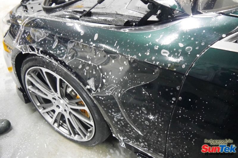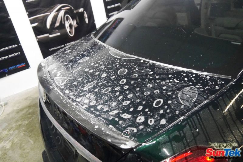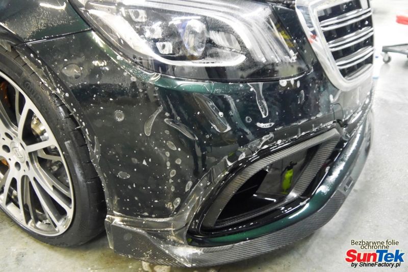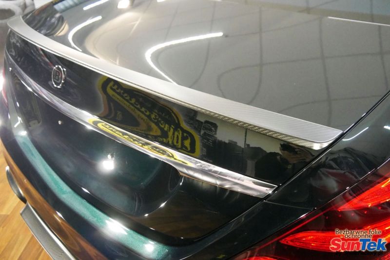 Zabezpieczenie frontów aut bezbarwnymi foliami ochronnymi staje się powoli standardem, coraz częściej także zabezpieczane w ten sposób są auta w całości co daje do tego czasu nieosiągalne perfekcyjne zabezpieczenie i efekt wizualny. Tym razem mieliśmy przyjemność zająć się Mercedes S63 w pakiecie BRABUS, który trafił do nas wprost z salonu w celu najlepszego na świecie zabezpieczenia całego auta. Decyzja padła oczywiście na połączanie znakomitych bezbarwnych folii ochronnych SunTek Ultra PPF z 10 letnią gwarancją oraz pakietu powłok ceramicznych. Standardowo prace zaczęliśmy od bardzo dokładnego oczyszczenia nadwozia z wszelkich naleciałości. Następnie po inspekcji usunęliśmy wszelkie niedoskonałości lakieru. Po przygotowaniu przeszliśmy do zabezpieczenia auta, najpierw aplikując bezbarwne folie ochronne. Folie zazwyczaj aplikuje się na najbardziej narażone el. auta jak przód, tym razem zdecydowaliśmy się praktycznie całe auto pokryć najlepszymi na świecie regeneracyjnymi foliami SunTek Ultra aby uzyskać 100% ochronę lakieru, który będzie całkowicie izolowany od środowiska zewnętrznego i nic nie będzie wstanie go uszkodzić. Po aplikacji folii przeszliśmy do zabezpieczania wszelkich el. auta powłokami, zaaplikowaliśmy pakiet powłok na całe auto, folie, szyby (Gtechniq G1), felgi (DLUX), elementy nielakierowane, a także całe wnętrze wraz z zaimpregnowaniem delikatnych skór. Po kilkudziesięciu godzinach pracy Mercedes nabrał perfekcyjnego wyglądu, połysku oraz co najważniejsze najmocniejszej praktycznie pancernej ochrony na lata. Zapraszamy do szerokiej fotorelacji!